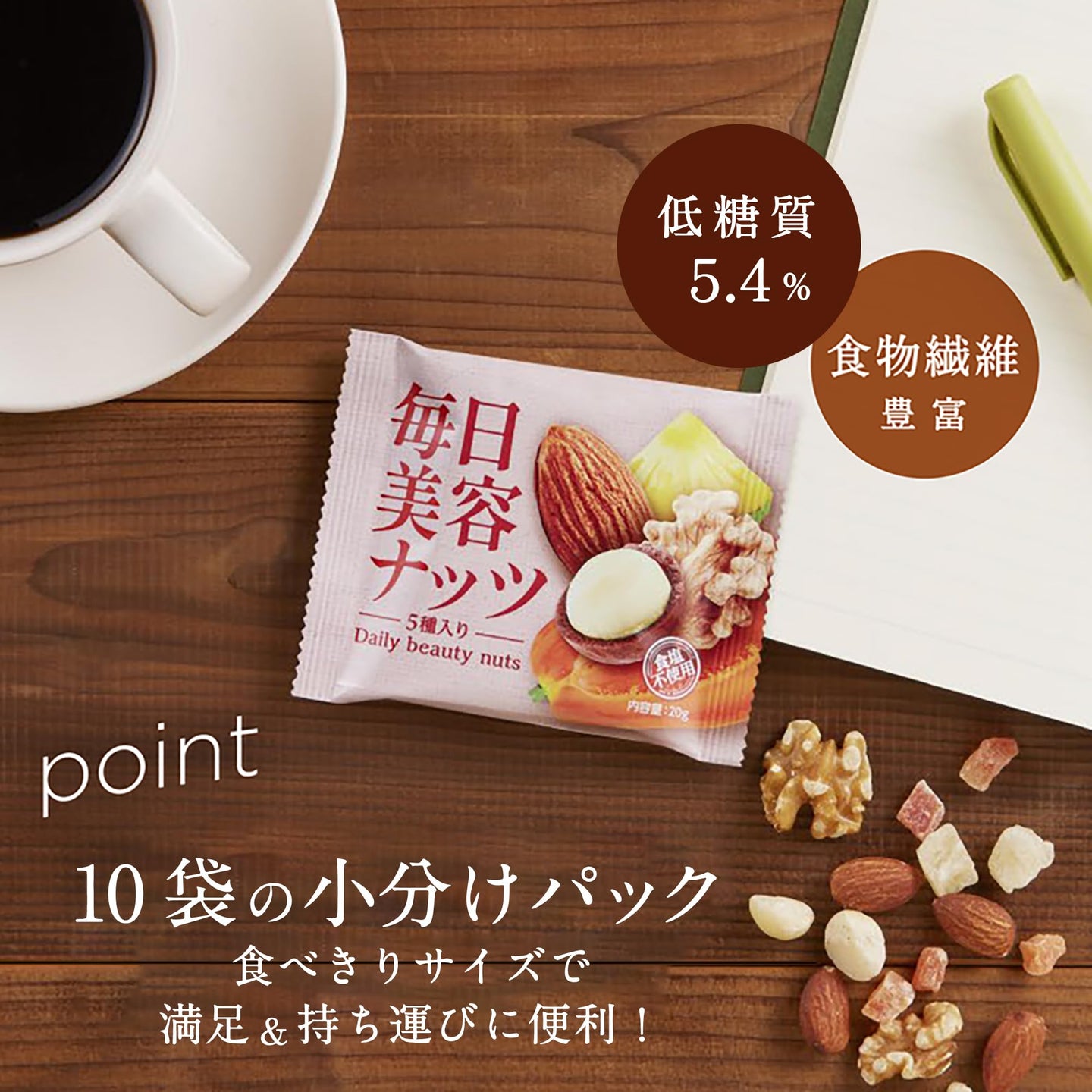 Everyday Beauty Nuts, Small Divided Mixed Nuts, Unsalted, Dried Fruits, 5 Luxurious Types (Almonds, Walnuts, Macadamia Nuts, Papaya, Pineapple) Natural Dining Hall, Health, Salt Free, Made in Japan,