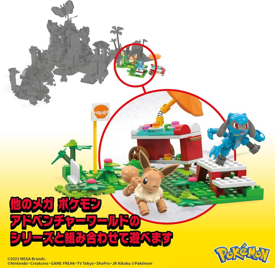 Mega HDL80 Pokemon Adventure World, Eevee, Riol and Hill Picnic ~ Parasol and Table Set~ [Block Set] [Block Pieces: 163 Pieces] [7 Years Old and Up] [Present]