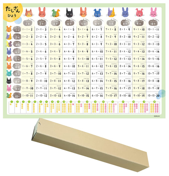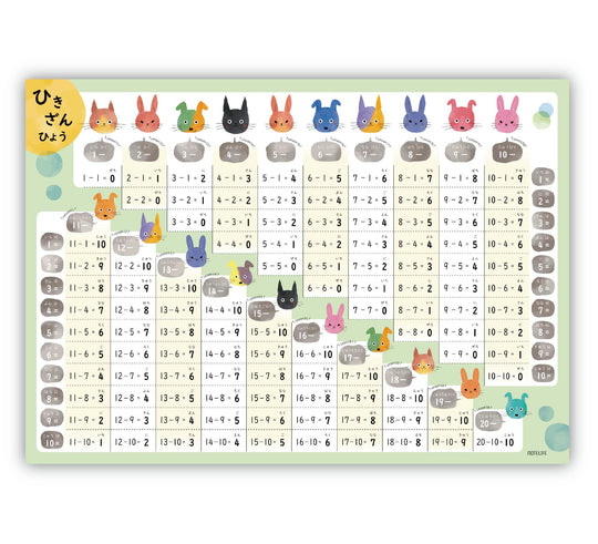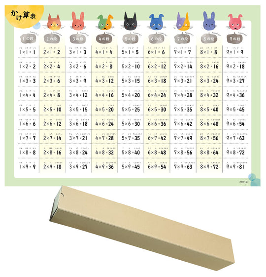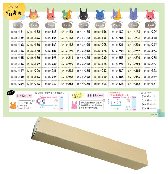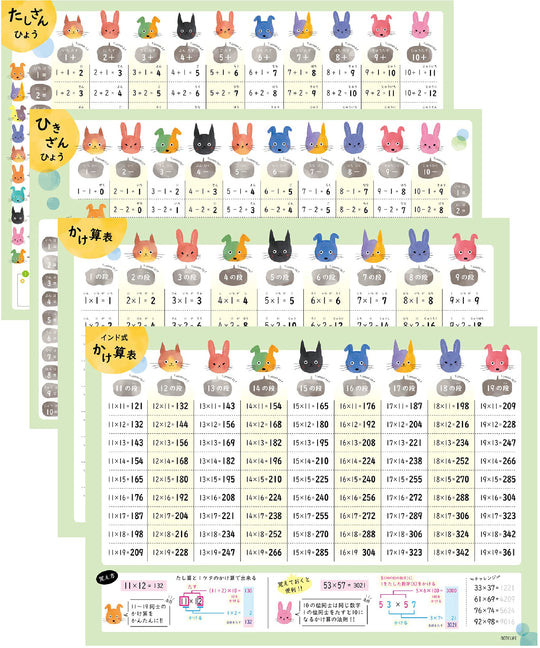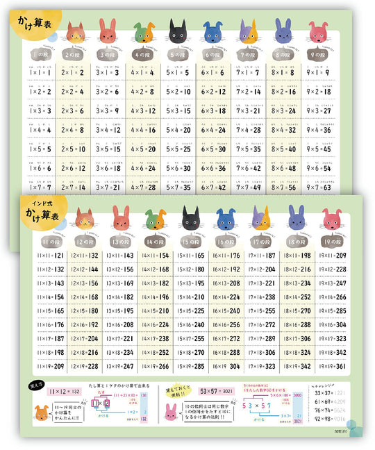 インド式かけ算 (19×19 暗算 解説付き) お風呂 ポスター いぬ ねこ うさぎデザイン 学習ポスター A2 (60×42cm) 小学生 インド式 ノートライフ 日本製 知育 算数 防水 (インド式)