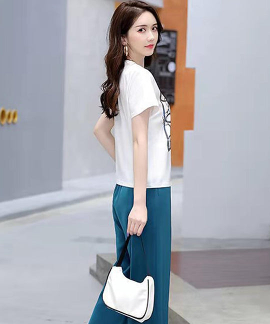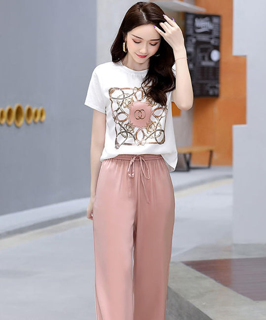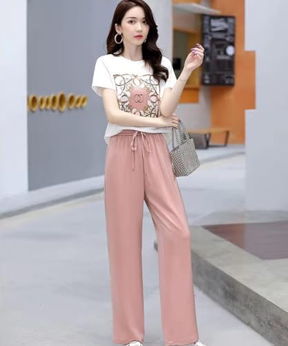 Doors 2-piece Setup, Top and Bottom Set, T-Shirt, Long Pants, Body Cover, Slimming, Everyday Wear, Resort