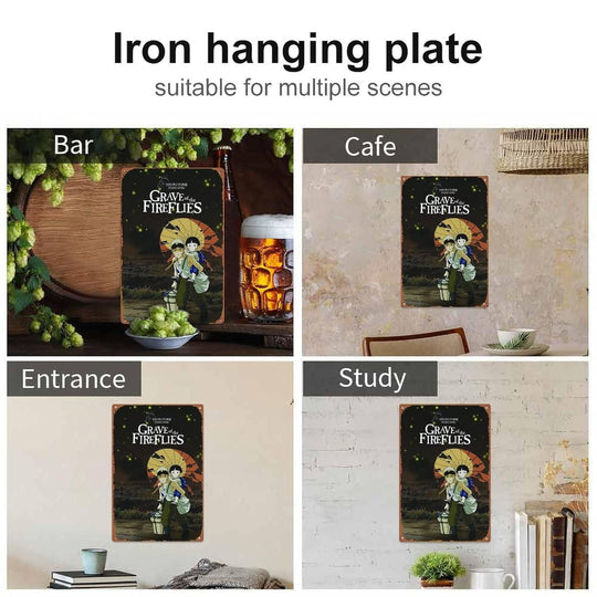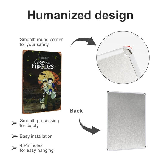 「Grave Of The Fireflies - スタジオジブリ」日本アニメ映画ポスター 金属製 ブリキ看板 部屋 壁装飾 サイン 8x12インチ