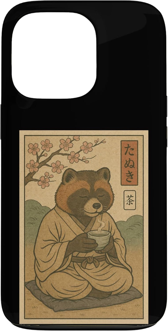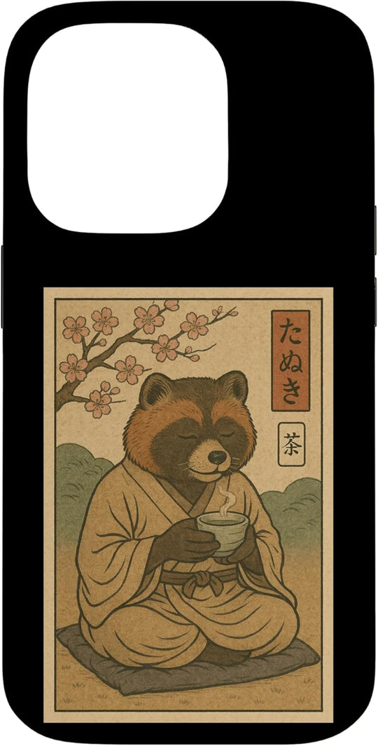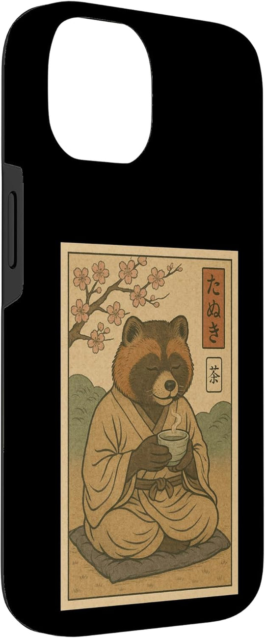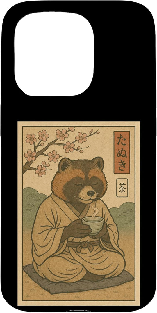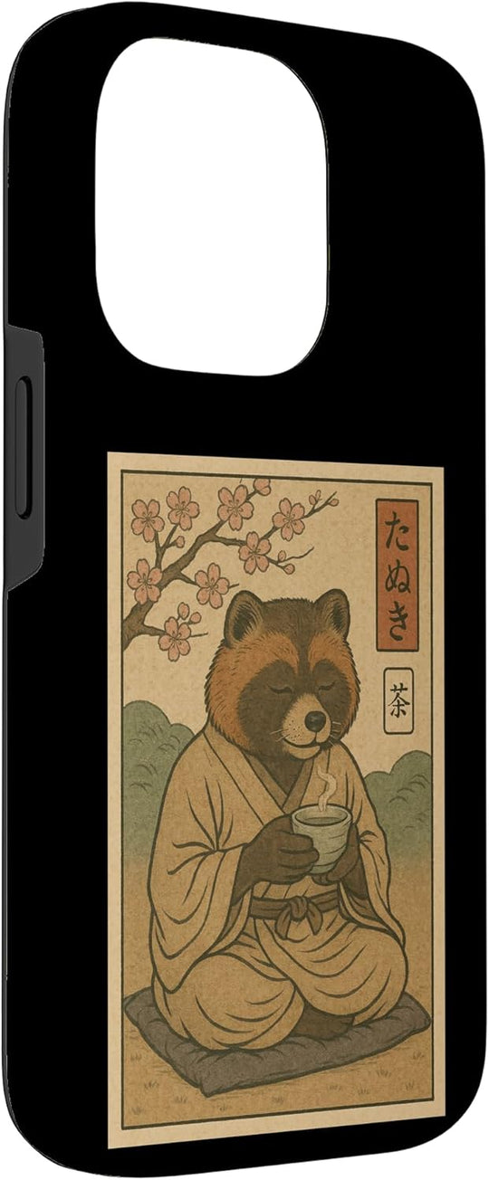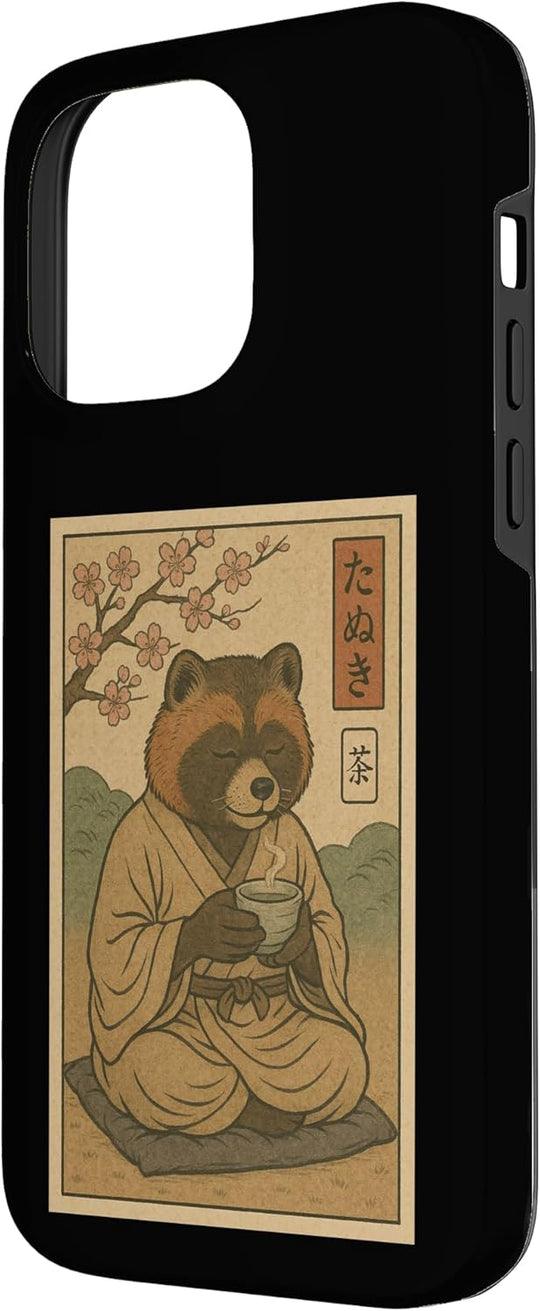 日本のアライグマ犬のお茶を飲む男の子、男性、女性、子供用。 スマホケース iPhone 15 Pro 用