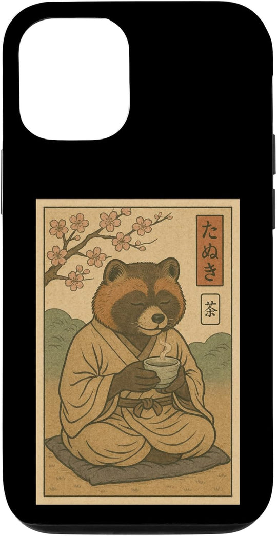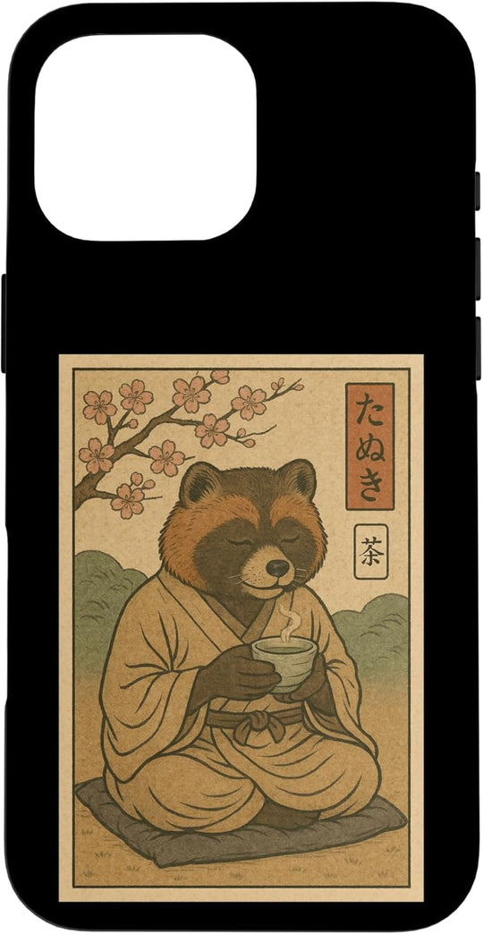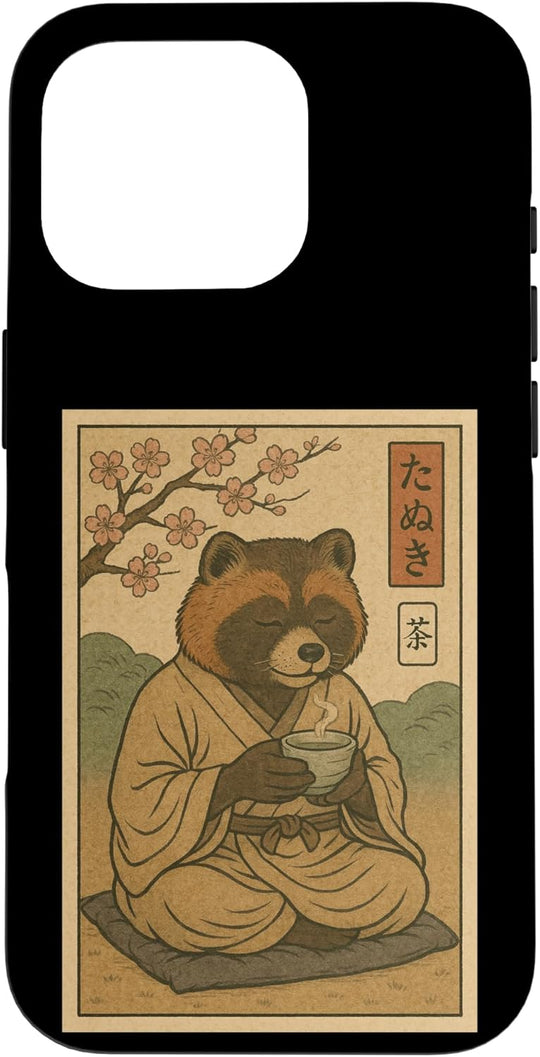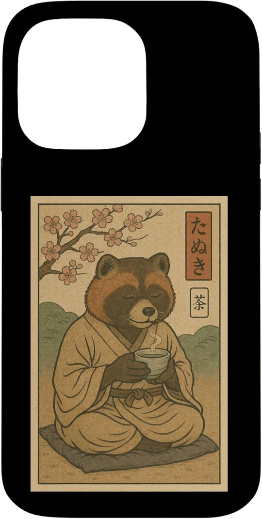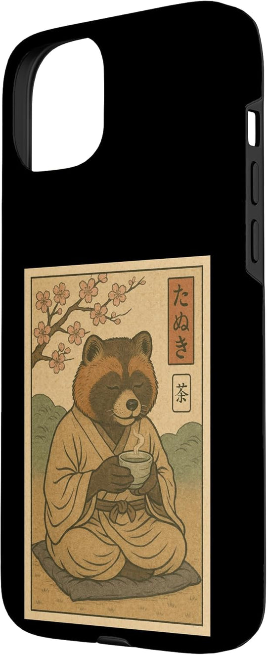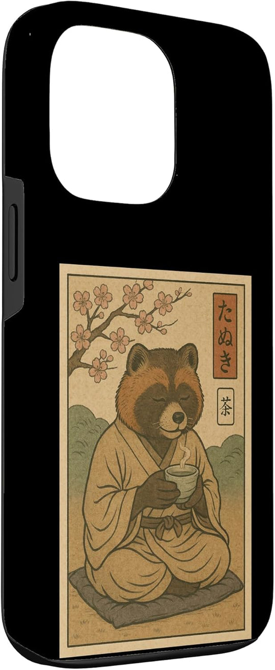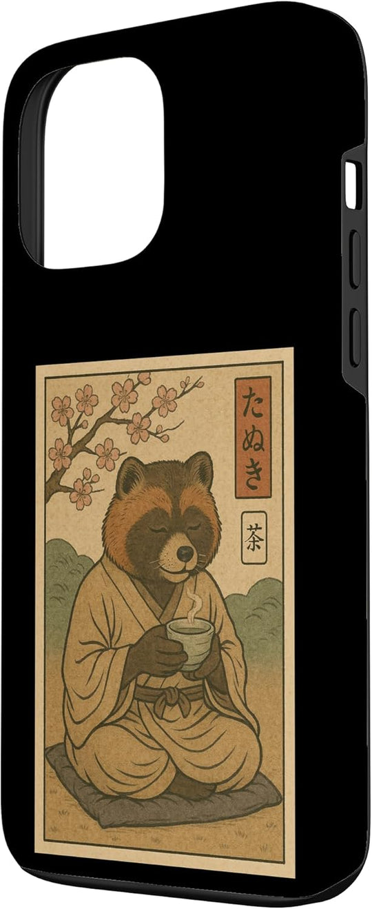 日本のアライグマ犬のお茶を飲む男の子、男性、女性、子供用。 スマホケース iPhone 15 Pro 用