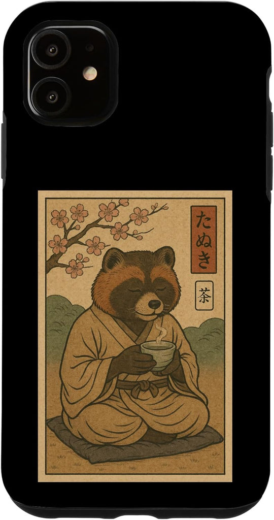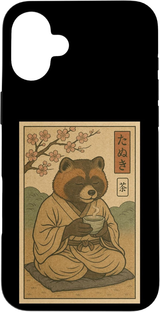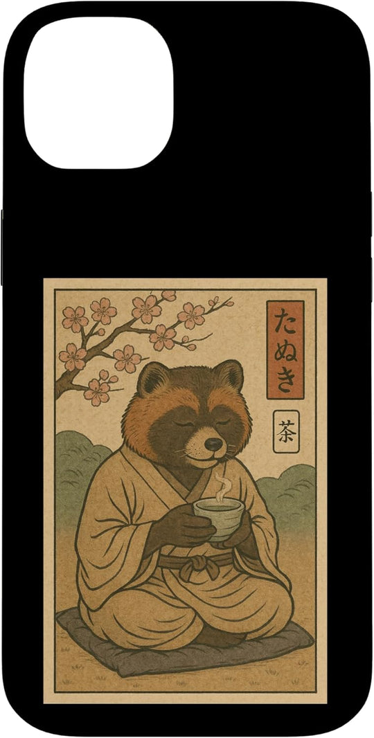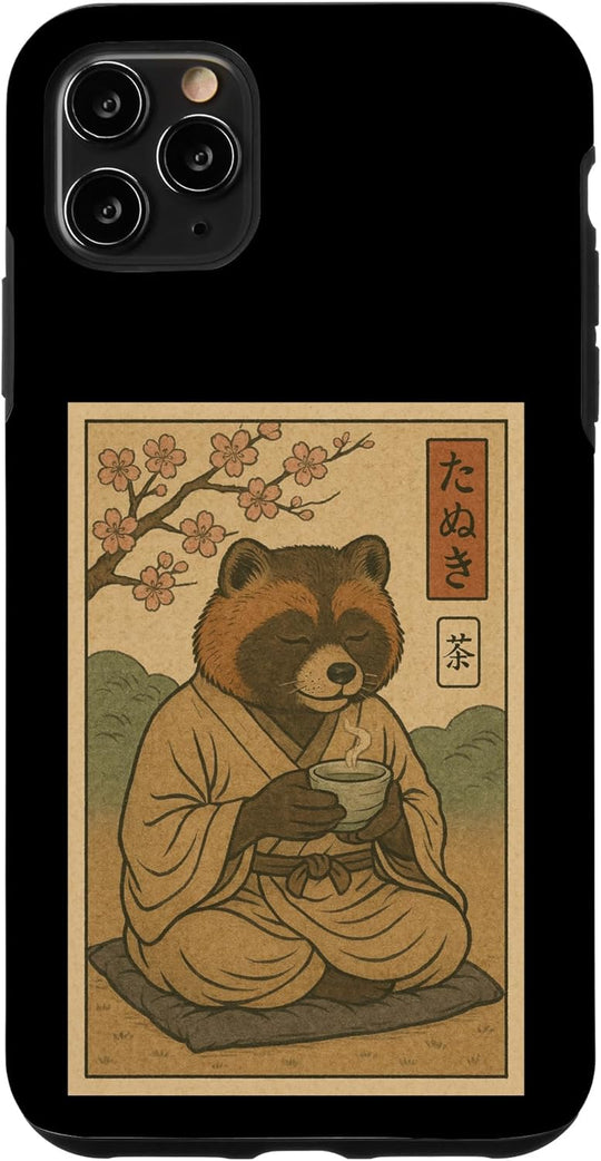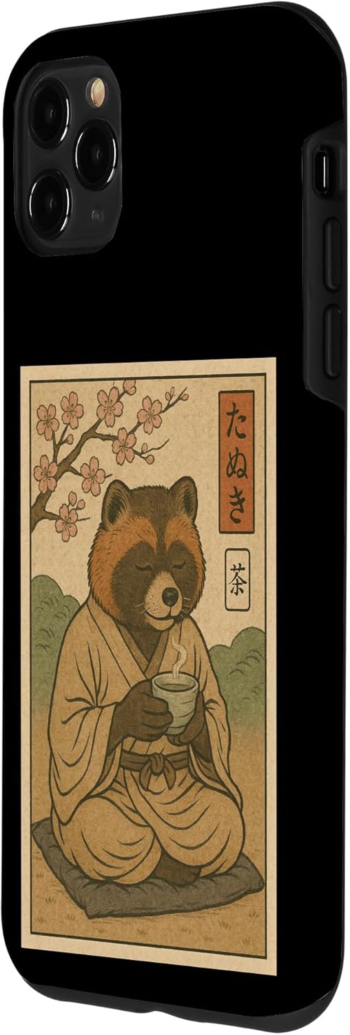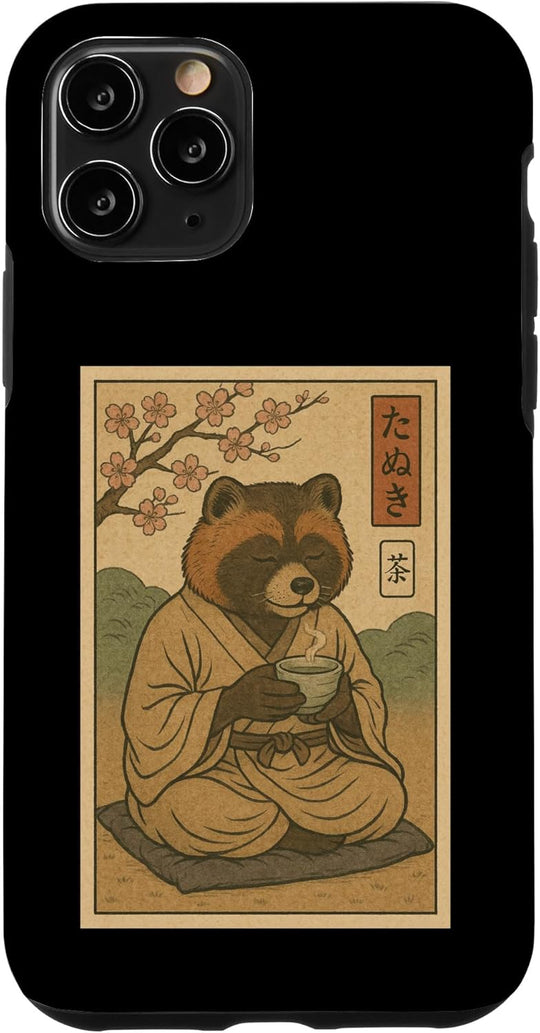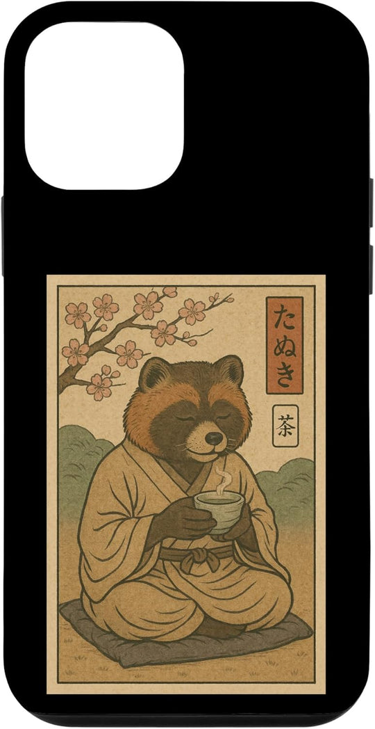 日本のアライグマ犬のお茶を飲む男の子、男性、女性、子供用。 スマホケース iPhone 15 Pro 用