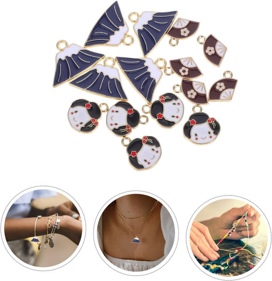 Vaguelly 15個 芸者の宝石 中国の日本のハンドヘルドファン キーホルダー アクセサリー チャーム ティーパーティーはファンを支持します ネックレス用フラワーペンダント お茶会ファン 合金