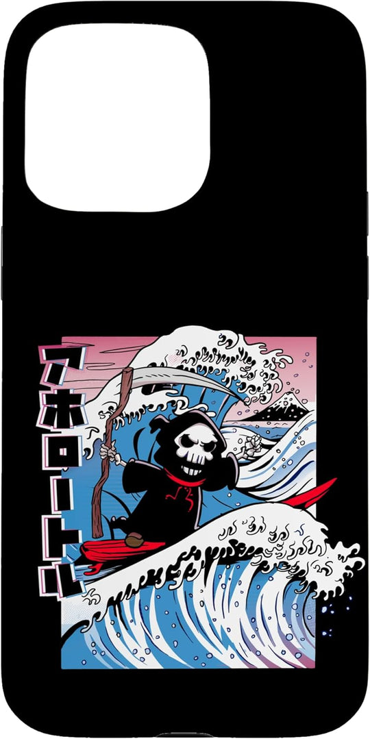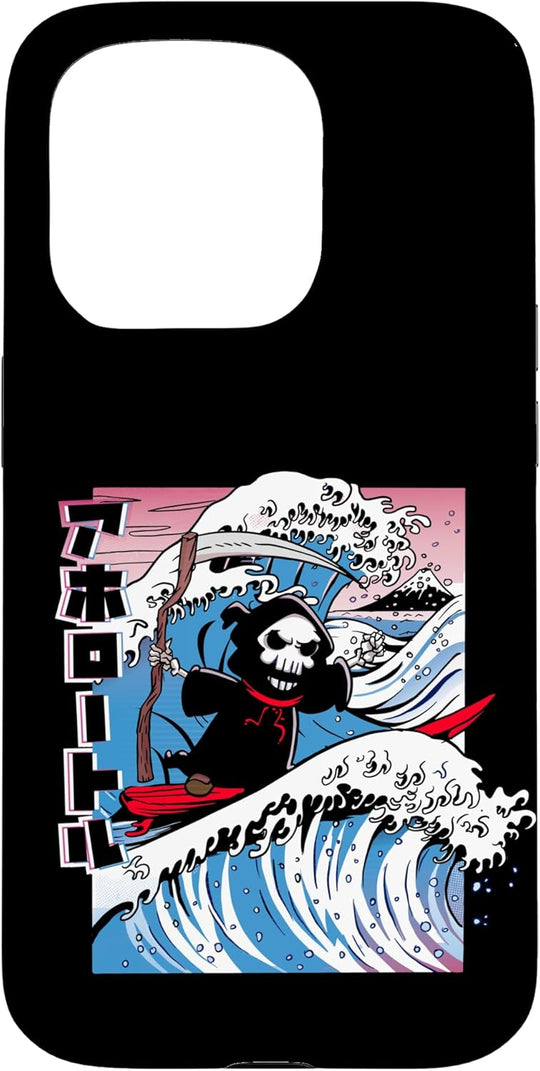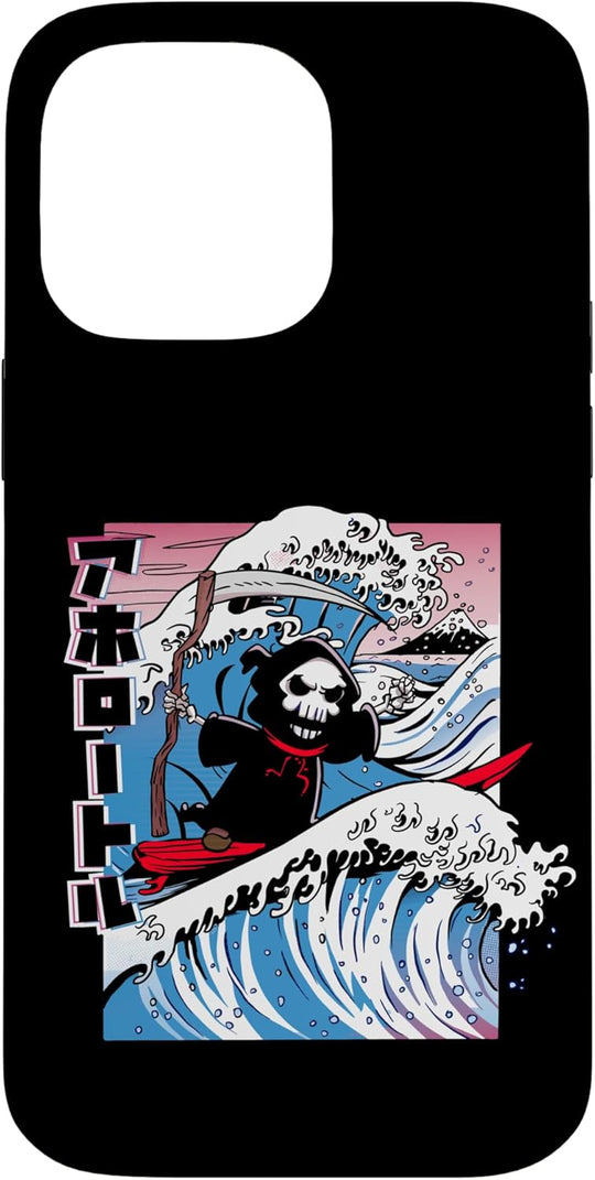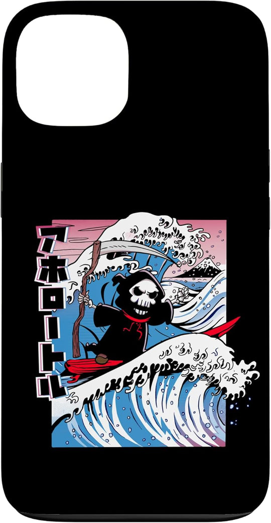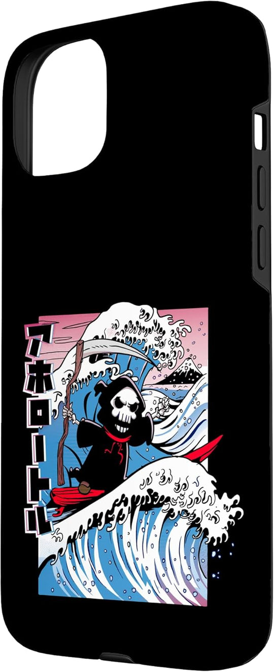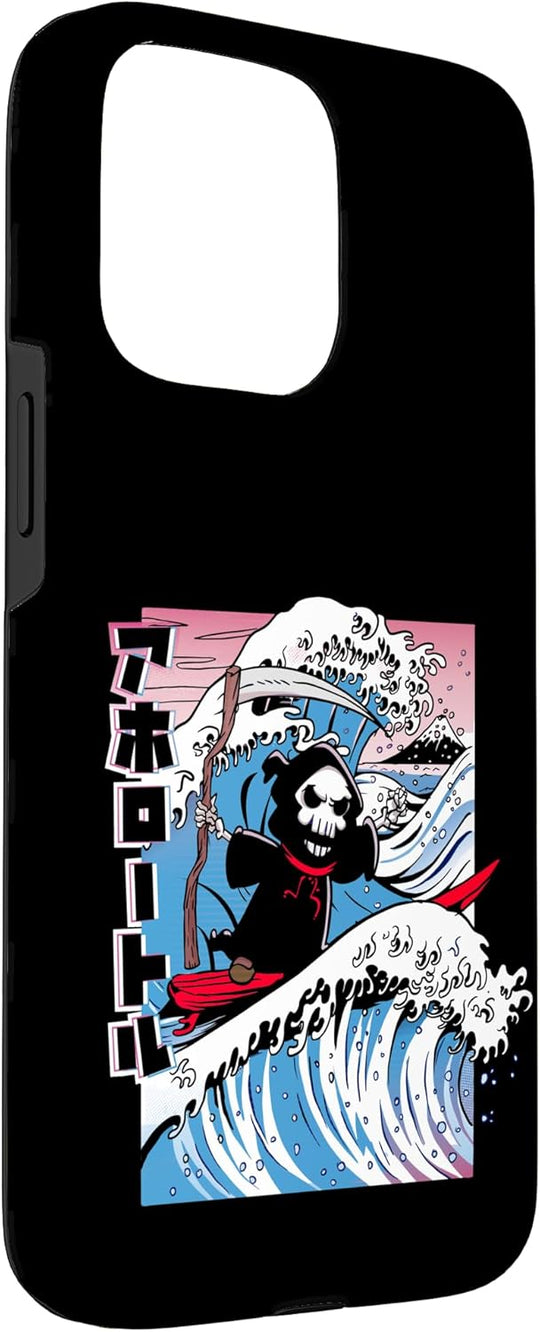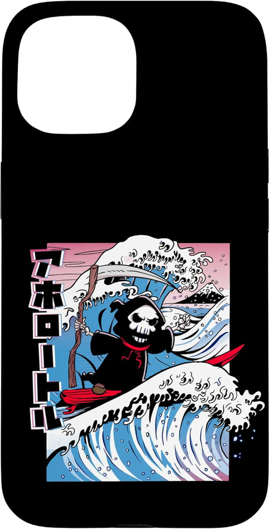 かわいい 和 カワイイ 死神 サーフィン 神奈川 波 スマホケース iPhone 15 Pro 用