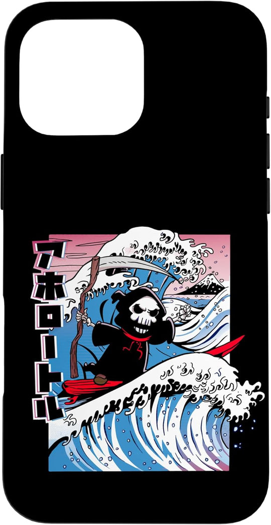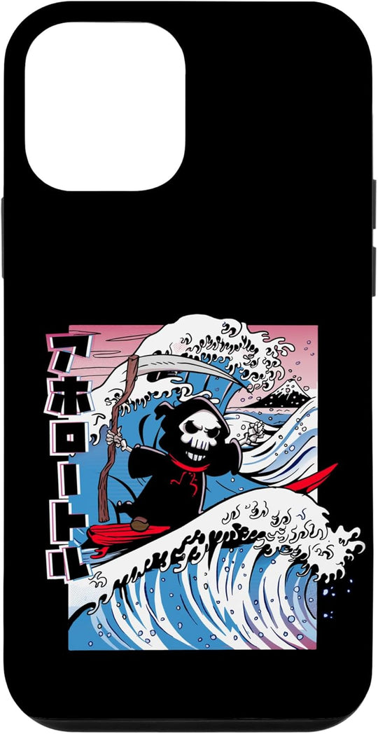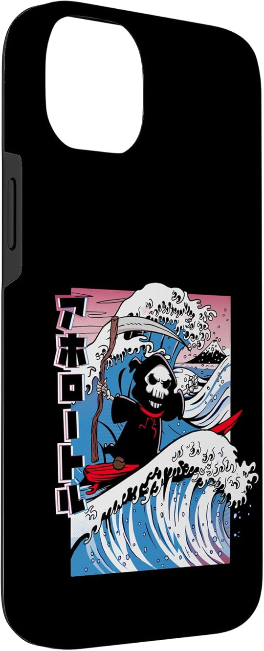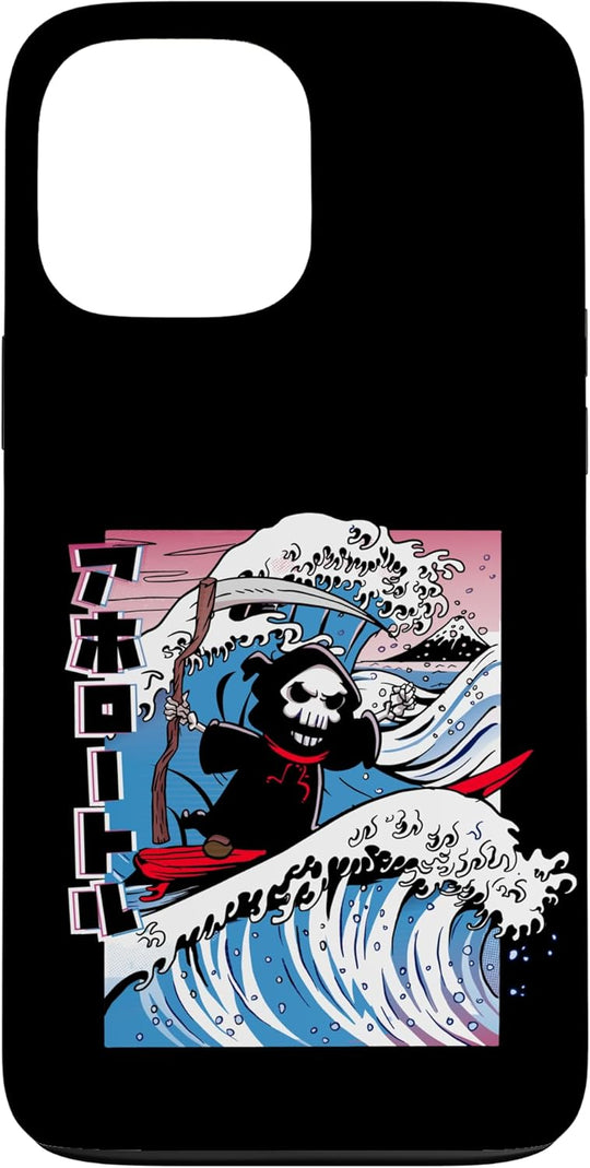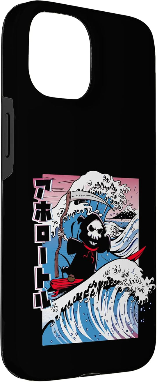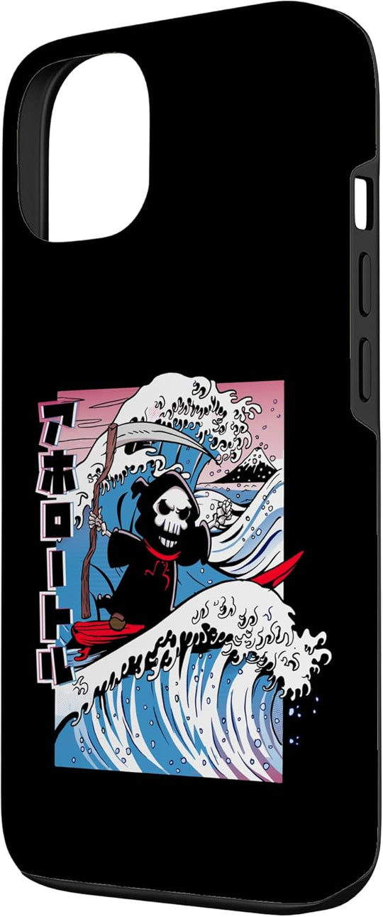 かわいい 和 カワイイ 死神 サーフィン 神奈川 波 スマホケース iPhone 15 Pro 用