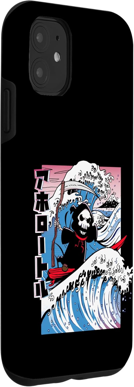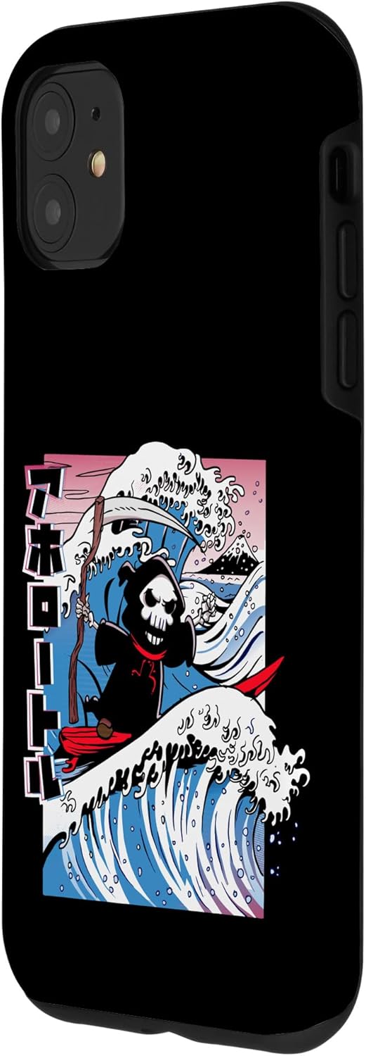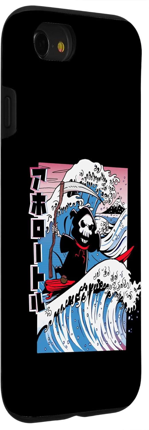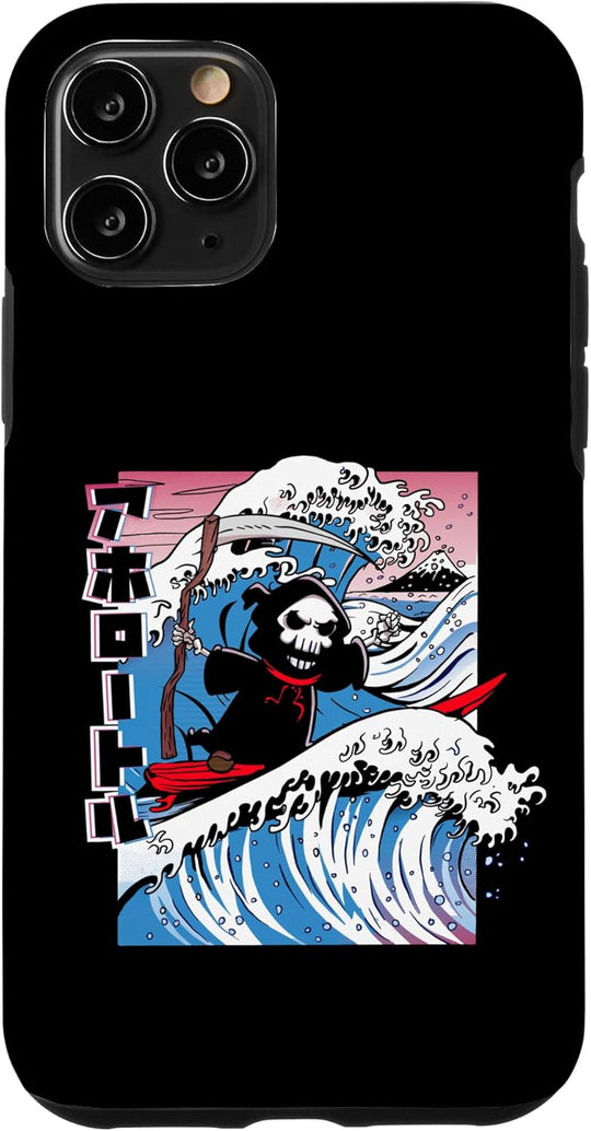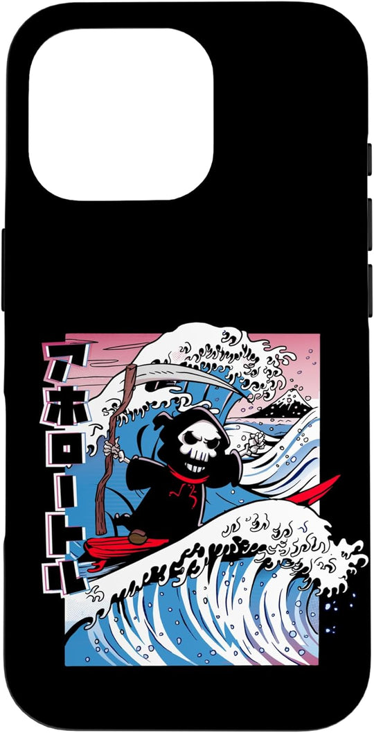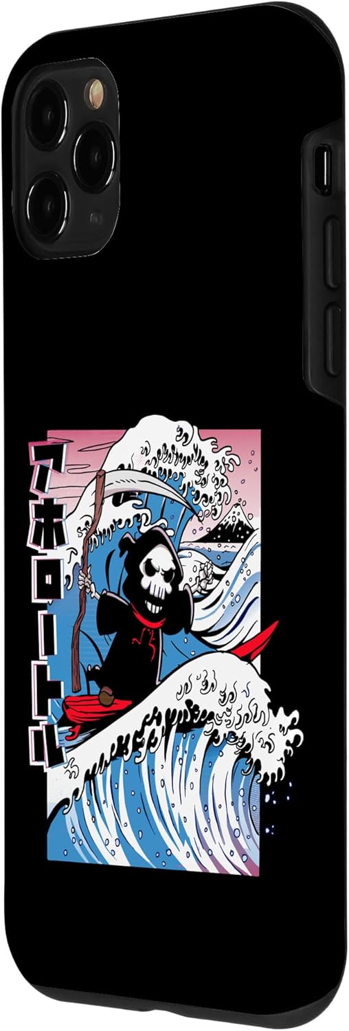 かわいい 和 カワイイ 死神 サーフィン 神奈川 波 スマホケース iPhone 15 Pro 用