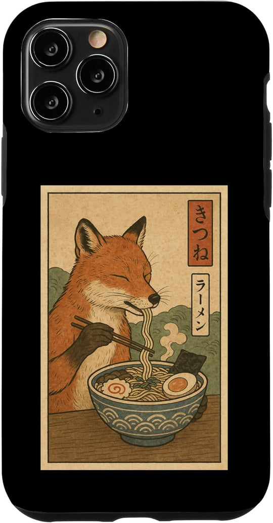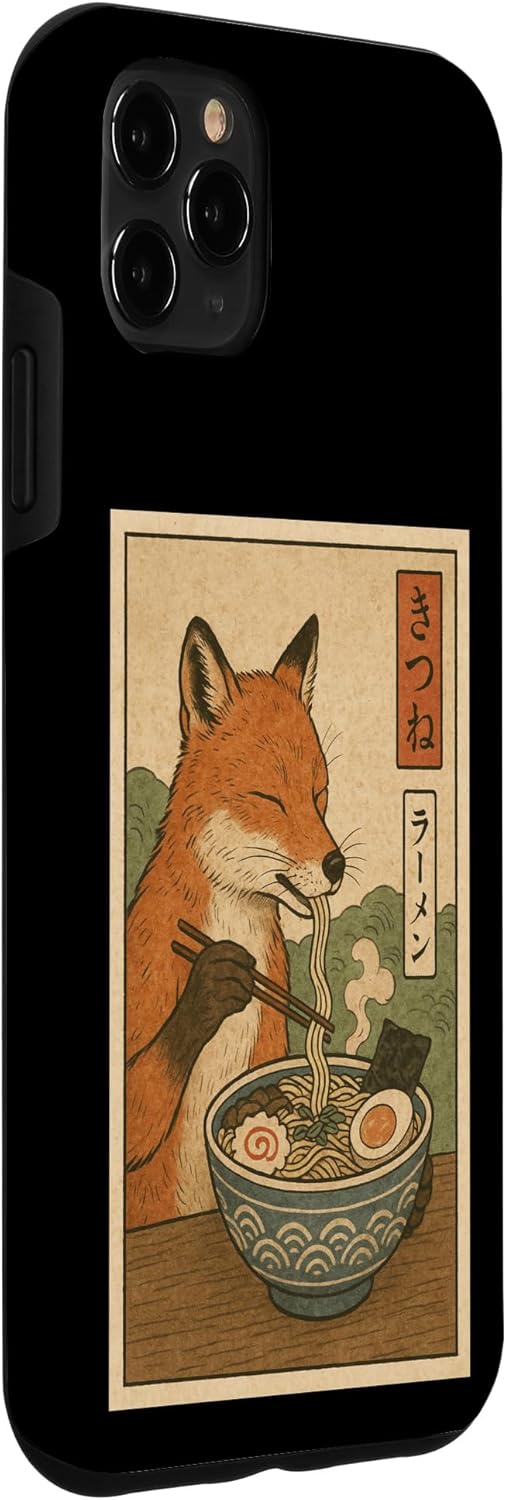 日本製キツネを食べるラーメン 男の子 男性 女性 キッズ スマホケース iPhone 11 Pro Max 用