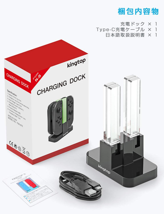 ジョイコン Joy-Con 充電 スタンド Nintendo Switch用 4台同時充電可能 KINGTOP ニンテンドー スイッチ 充電ホルダー チャージャー 充電指示LED付き 日本語説明書付き