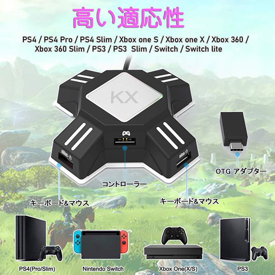 片手キーボード マウス コンバーター セット switch対応 フォートナイト用キーボード Switch/switch lite/PS4/PS3/Xbox対応 RGBゲーミングキーボード ゲーミングマウス 接続アダプターFPS/TPS/RPG/RTSなどに最適 日本語説明書付き USINFLY