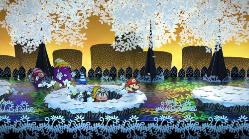 個性豊かな仲間たちと、ペラペラマリオが大冒険 【ストーリー】「宝探しを手伝ってほしい」というピーチ姫からの手紙を受け取り、「ゴロツキタウン」へやってきたマリオ。しかし、ピーチ姫の姿は見当たりません。ピーチ姫の手がかりを求め、街で宝の研究をするフランクリ先生を訪れたマリオは、「1000年のトビラ」が宝へとつながること、そしてトビラを開くには7つの「スターストーン」がいることを聞きます。宝を追えばピーチ姫に会えるはず、と考えたマリオは、街で出会ったクリスチーヌとともに、スターストーンを探すべく紙の世界の冒険に出かけます。また、どうやらマリオだけでなく、クッパもピーチ姫を探しているようで…… 【冒険の舞台は、出会いと驚きがいっぱいの紙の世界】訪れる先では、巨大なドラゴンが待ち受けていたり、住んでいる人が突然ブタになったり、列車の中で事件が起きたりとさまざまな出来事が起こります。一見、進めなさそうな場所に出くわすこともありますが、ペラペラな体を活かして狭い隙間に入ったり、紙飛行機に変身して空を飛んだりと、マリオは紙ならではのアクションで道を切り拓いていきます。 【マリオと冒険を共にする、個性豊かな仲間たち】訪れた先で出会う、ちょっぴり変わったキャラクターたち。周りの人や場所、敵などの情報を教えてくれる「クリスチーヌ」、コウラにもぐって体当たりするのが得意な「ノコタロウ」、強い風を起こして近くのものをふきとばせる「クラウダ」など、彼らは仲間となり、さまざまな能力や個性でマリオの冒険を助けてくれます。 【ハチャメチャ劇場バトル】フィールドで敵にぶつかると、劇場を舞台にターン制のコマンドバトルが開始! マリオは、「攻撃」、「アイテム」、「スペシャルワザ」、「ぼうぎょ」、「観客へのアピール」など、様々な行動の中から、戦略に応じたものを選択します。攻撃に合わせてタイミングよくボタンを押すと敵に与えるダメージがアップし、観客も一体となってバトルを盛り上げてくれます。通常価格 から 5,400通常価格 から 5,400 -