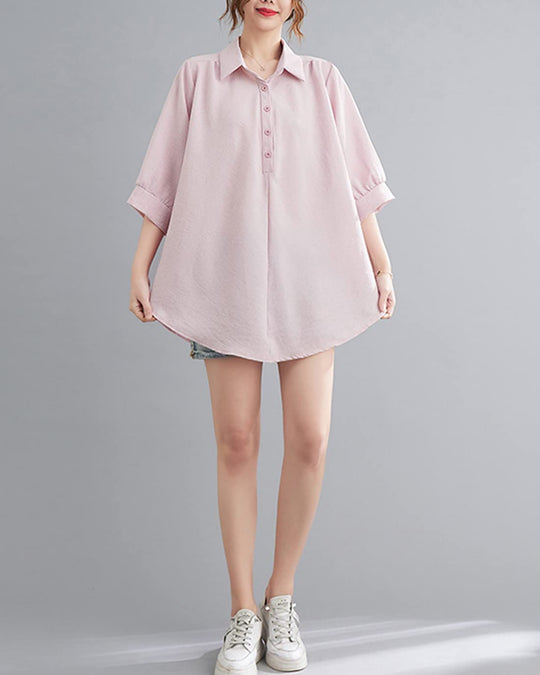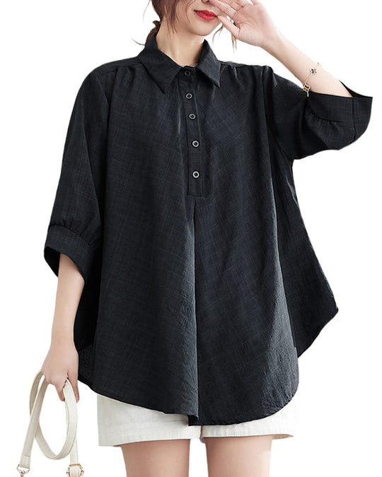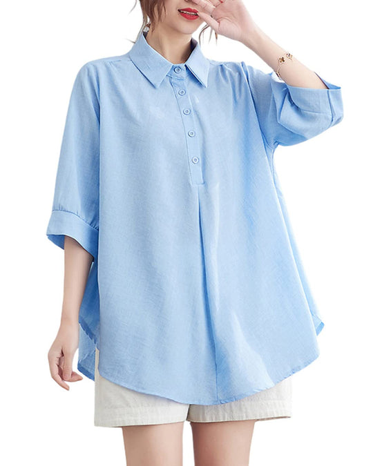 [JHIJSC] レディース シャツ 半袖 夏 オフィス ゆったり 無地 薄手 七分袖 亜麻 おしゃれ 大きいサイズ