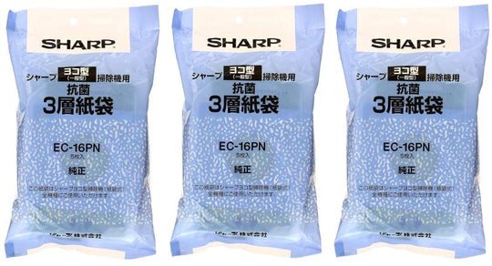 【まとめ買い】シャープ クリーナー用 純正紙パック 抗菌3層紙袋【5枚入】SHARP ヨコ型タイプ掃除機用 EC-16PN×3個