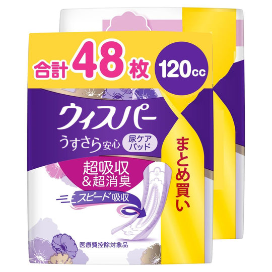 [まとめ買い・大容量]ウィスパー うすさら安心 120cc 48枚 (24枚×2パック) (尿漏れパッド 尿とりパッド 女性用)【中量用】