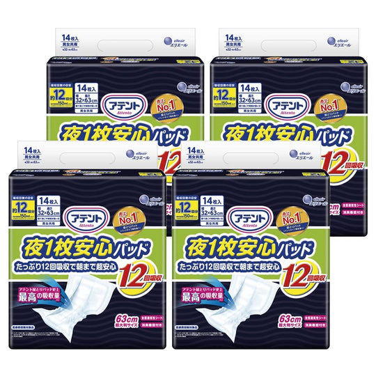 アテント 夜1枚安心パッド たっぷり12回吸収で朝まで超安心 12回吸収 テープ式用 56枚(14枚×4パック) [ケース販売]