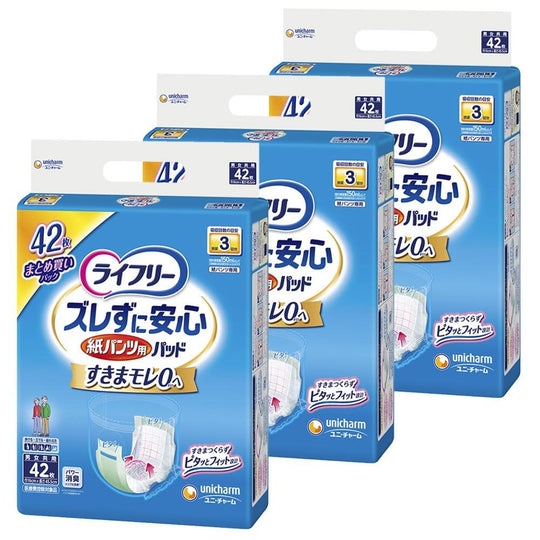 ライフリー 紙パンツ用尿とりパッド ズレずに安心 長時間用 3回吸収 126枚(42枚×3) 大人用おむつ[ケース品]