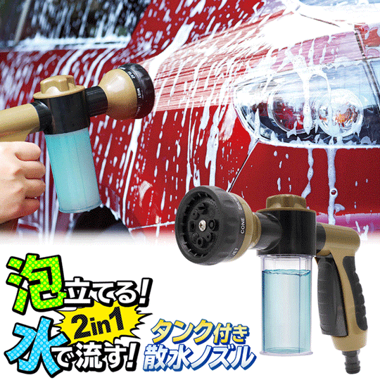 散水ノズル タンク付 洗剤 & 水 同時噴射 8種噴射 ホースヘッド 洗剤タンク付き 泡洗車 便利グッズ ノズルヘッド 泡 ⇔ 水切替 可能 洗車 窓掃除 台所掃除 大掃除 まとめ買い //60N◇ タンク付き散水ノズル