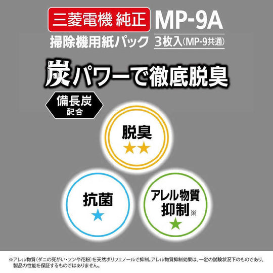 三菱 MITSUBISHI 掃除機用(備長炭配合)炭紙パック(3枚入) MP-9A