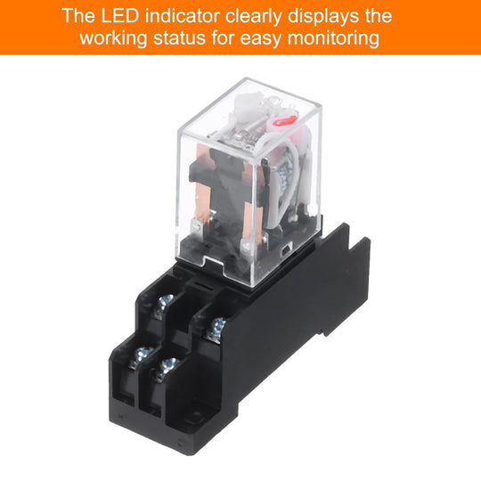 uxcell AC12V Electromagnetic Power Relay 8 Pin AC/DC DPD T 2NO+2NC Relay Coil with Socket Base for Industrial Household Appliances and DIN Rail Systems with LED Indicator