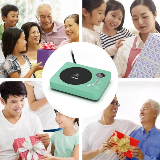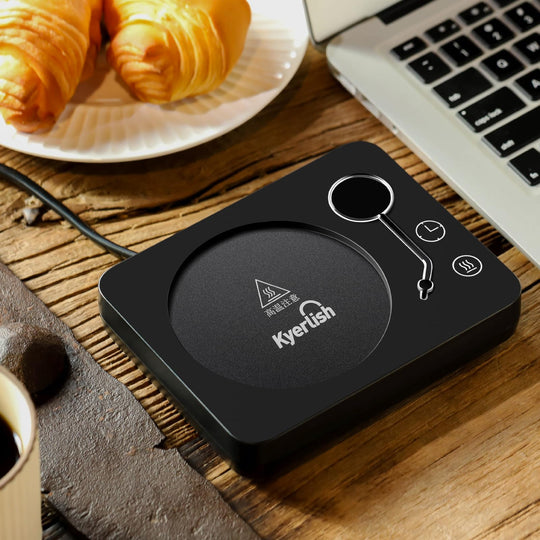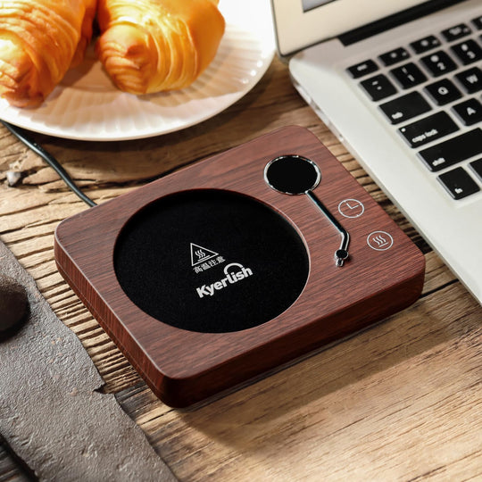 Kyerlish カップウォーマー コーヒー保温コースター マグカップウォーマー ドリンクウォーマー 3段温度設定55℃ 65℃ 75℃ 重力センサー付き 静音 自動電源オフ コップ保温 水/お茶/コーヒー/牛乳など飲み物 加熱コースター オフィス/家庭用 友達/家族へのプレゼント PSE安全認証済み AC100V/30W(木目-75℃ 50/60Hz全国対応)