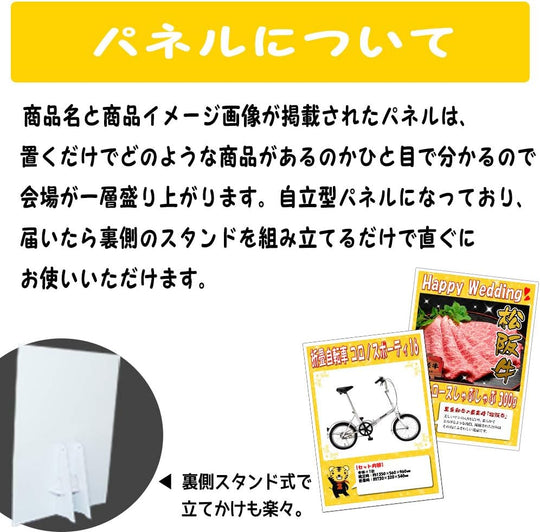 結婚式 ビンゴ ゴルフコンペ 新年会 ボウリング大会 忘年会 社内イベント 親睦会 記念式典 慰安旅行 クリスマス会 合格祝賀会 同窓会 販促イベント 福利厚生などの景品に。 商品引換券(目録)の引き換え期限はご購入月から3か月間です。(4月ご購入の場合、7月末の引き換え期限になります。)ご利用日が先の方はギフトメッセージの欄にご利用日をご記入いただけますと、その日付から3ヶ月の計算となります。 パネルは自立できるスタンド付き。ご当選された方にパネルと引換券をお渡しください。引換券と同封で申込方法などが記載されています。 引換券でお申込いただいた商品はお申込から約2週間でお届け致します。ゴールデンウイークやお盆、年末の時期になりますと、商品の出荷元が休業の為お届け日として選択できませんのでご注意ください。 メーカーの生産終了などの理由により予告なく商品が変更になる場合があります。その際は、同額の同じジャンルの商品を選定致します。 › もっと見るតម្លៃដែលទៀងទាត់ 11,124តម្លៃដែលទៀងទាត់ 11,124 -