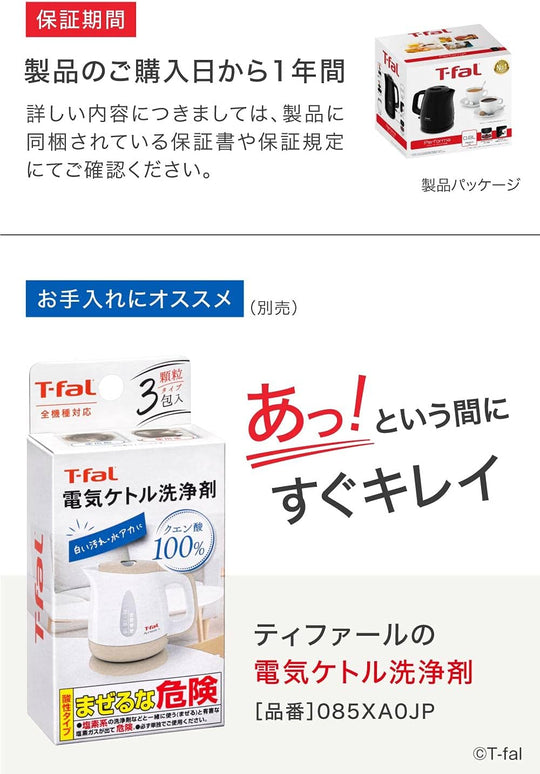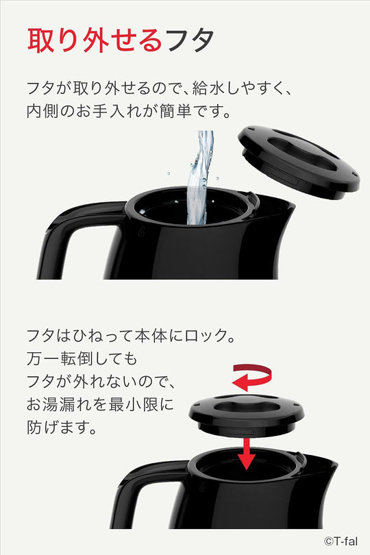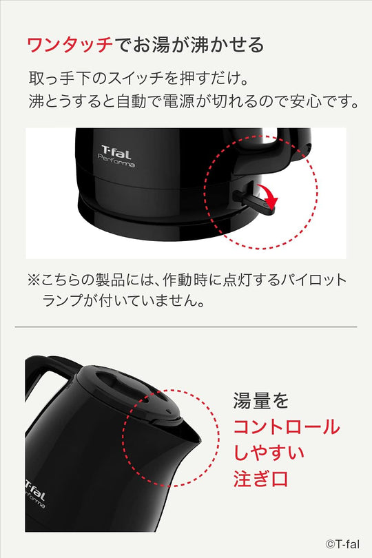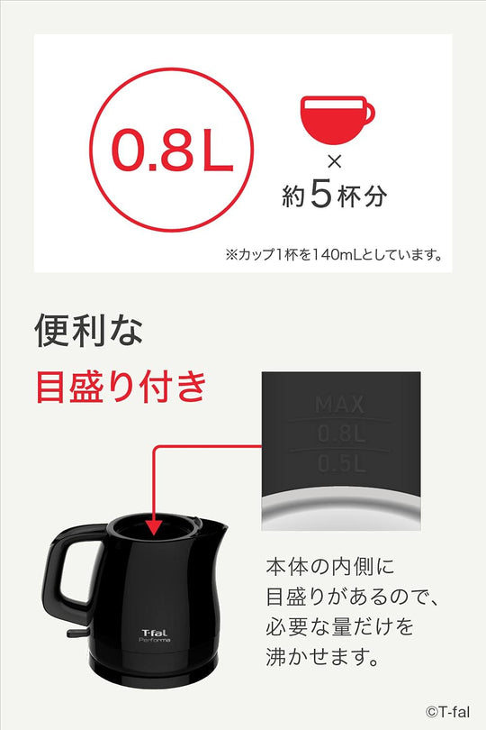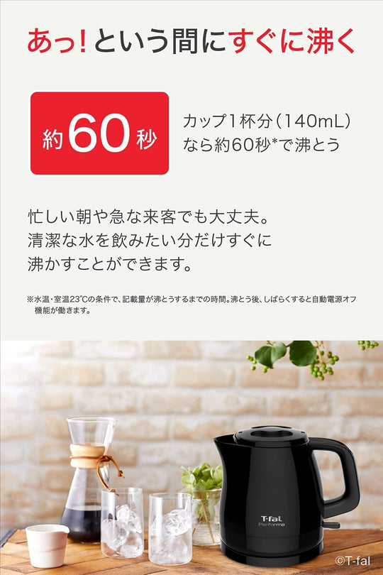 【オンライン限定】 ティファール パフォーマ ブラック 電気ケトル0.8L コンパクト 空焚き防止 自動電源OFF フタ取り外し可 お手入れ簡単 KO1538JP