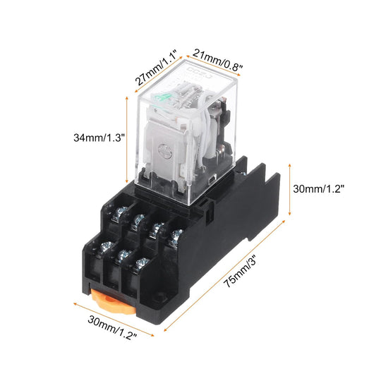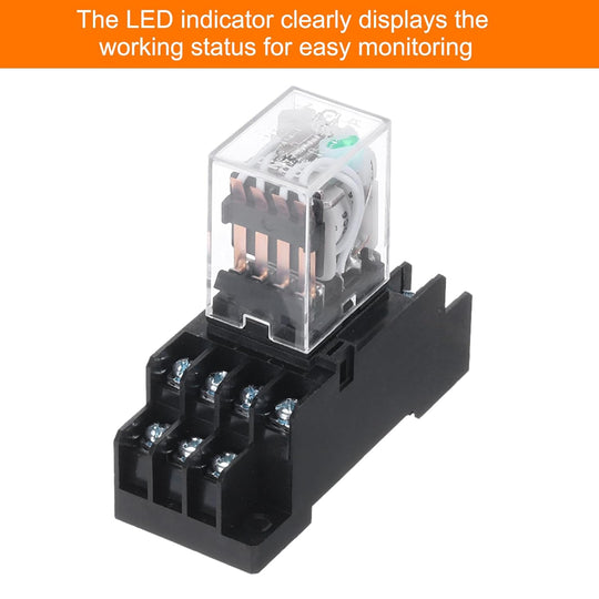uxcell DC6V 電磁パワーリレー 14ピン AC/DC DPDT 4NO+4NC リレーコイル ソケットベース付き 産業用 家庭用電化製品およびDINレールシステム用 LEDインジケーター付き