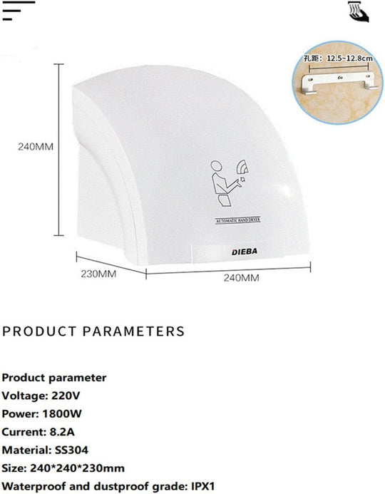自動ハンドドライヤー 自動電動ハンドドライヤー ミニポータブル自動誘導ハンド乾燥機 家庭用電化製品 低騒音レベル、速乾時間