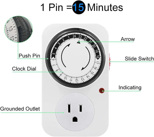 機械式タイマースイッチ 48 オン/オフ 最小15 コンセントタイマー 接地 水槽用 成長ライト 水耕栽培照明 家庭用電化製品(U+S)