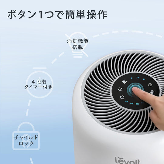 【人気モデル、 20畳対応可能】① 抜群な清浄機能だけでなくデザイン性の高さが魅力で全世界から3000万人以上に愛用されていて、米国で最も売れた人気モデルです。②H13高性能HEPAフィルター搭載で花粉吸収、脱臭、集塵、浄化をコンパクトサイズで実現し、Vortexair テクノロジーで、部屋のすみずみまでスピーディーに清浄できます。寝室、リビング、ダイニングなど様々な場所にオススメ!③世界的に権威あるデザイン賞である「Red Dot Design Award 2019」と「IF DESIGN AWARD 2020」もダブル受賞しました。あらゆるタイプの部屋に置いても馴染みます。詳細については、「メーカーによる説明」をご参照ください。 【強力ですばやく清浄に!】①特許のVortexAir3.0技術と11個の遠心ファンにより、吸引力がアップされ、風量を最大にすれば8畳をわずか13分で浄化できます。②空気清浄能力は20畳まで対応しているため、6畳の寝室・ベビー室・一人暮らしなどの小スペースは勿論、オフィスやリビングのような広い空間でもご利用頂けます。 【静かで省エネ、つけっぱなしでも大丈夫! 】①特許取得済みのサイレントテクノロジーと特殊の風道設計で運転音を24dBに低減し、同時に、画面表示オフ機能も搭載されているので、光に敏感な方でもぐっすり眠れます。②静音の上におやすみモードの消費電力は14wですので、つけっぱなしにしても気になりません。 【タイマーとチャイルドロック機能で、生活の利便性をアップ】①2h・4h・6h・8hのタイマーなどの機能が搭載されている操作パネルがわかりやすくて、若者はもちろん、お年寄りも簡単に操作できます。②赤ちゃんやペットの誤操作を防止できるチャイルドロックは安全安心にお部屋の空気を守ります。③フィルターチェック表示は点灯した場合、フィルターを交換する必要があるという意味ではありません。フィルターを掃除してからリセットするだけで使用できます。④リセット後もライトが点灯している場合は、フィルターを交換する必要があります。 【ミニサイズ・省スペース・こぎれいデザイン】①iFデザインワード2020、レッドドット・デザインアワード2019、数々のデザイン賞を受賞したLevoit空気清浄機は、和室にも洋室にも馴染めます。②360度空気を吸収できる丸い形をして、置く場所を選びません。③時に可愛らしい、時にスマート、日常に彩りを添えます。 【交換用フィルター別売】①交換専用のフィルターの購入用検索キーワード: B07TYMHQQG(オリジナルフィルター) B0861RKWP7(ペット専用フィルター)です。②試験機関:(株)電通サイエンスジャム JEM 1467-2015の試験により、フィルターの寿命は2年です。推薦のフィルター交換目安は6~12ヶ月です。 【お問い合わせ方法】商品ページの「販売元」を選択し、出品者情報ページに移動すると、質問用のチャットボタンが表示されます。お困りの点やご質問がございましたら、お気軽にお問い合わせくださいませ。 › もっと見る 色 ホワイト ブランド Levoit 商品の寸法 22奥行き x 22幅 x 36高さ cm 床面積...តម្លៃដែលទៀងទាត់ ពី 0តម្លៃដែលទៀងទាត់ ពី 0 -