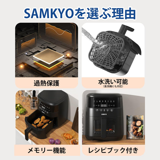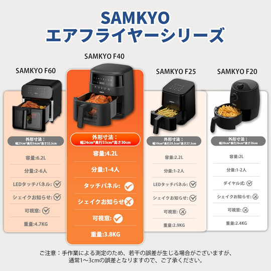 SAMKYO ノンフライヤー 4.2L 可視窓 大容量 1-4人用 エアフライヤー タッチパネル 日本語レシピ付き ノンフライヤー機 フライヤー 揚げ物 惣菜 F40 ブラック