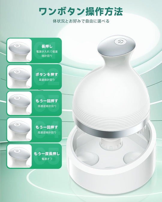 電動頭皮ブラシ 【すごうでヘッドケア】プロの技術を参考し、手のひらで握りやすいようにデザインされています。回転可能なヘッドが4つあり、付属品それぞれに19個の独立したテーパ、総計76個の錐形触角があります。プロの技術を模倣し、ただのブラシを超えるサロンレベルの技術を再現できます。 【4つのモード、2つのスピード】2種類の回転速度を備えています。高速と低速の2種類をお好みでお選びいただけます。また、低速時計回り、高速時計回り、高速反時計回り、低速度反時計回りの4モードがあります。ボタンを短く押すたびにモードを切り替える、という作業のサイクルです。 【乾湿両用、風呂をもっと楽しめる】普段の使用はもちろん、風呂場でも使用することができます。直接水の中に入れませんが、濡れた髪には問題なく動作でき、シャンプーと合わせて使うことがおすすめ 【10分タイマー設定】何事にも適度がいい、タイマー設定は十分間、疲れた時に使って寝落ちにしても、電池切れまで無駄に回転することがありませんのでご安心ください。 【使用方法&注意事項】使用方法:製品の電源スイッチを3 ~5秒長押しして電源を起働し、起働後ボタンを1回押す度に回転方向と速度を調整します。また、本製品は商品発送前に充電を行っていませんので、製品到着時に製品を充電してからご使用ください。 › もっと見る 電源 バッテリー式 ブランド Sioditin 色 白 特徴 充電可能, タイマー 商品の寸法 12長さ x 15幅 x 12高さ cm 耐水レベル 非防水 メーカー Ewbobតម្លៃដែលទៀងទាត់ 2,508តម្លៃដែលទៀងទាត់ 2,508 -
