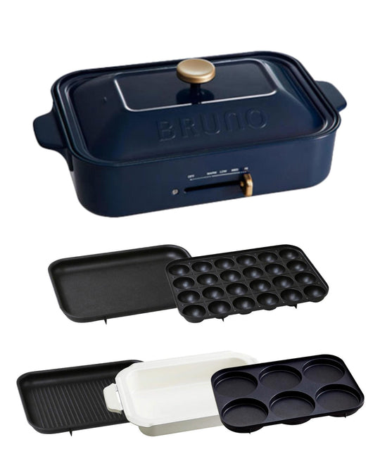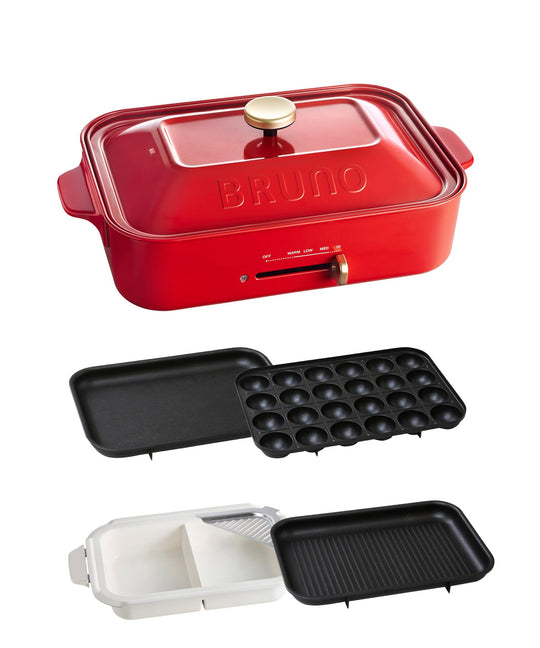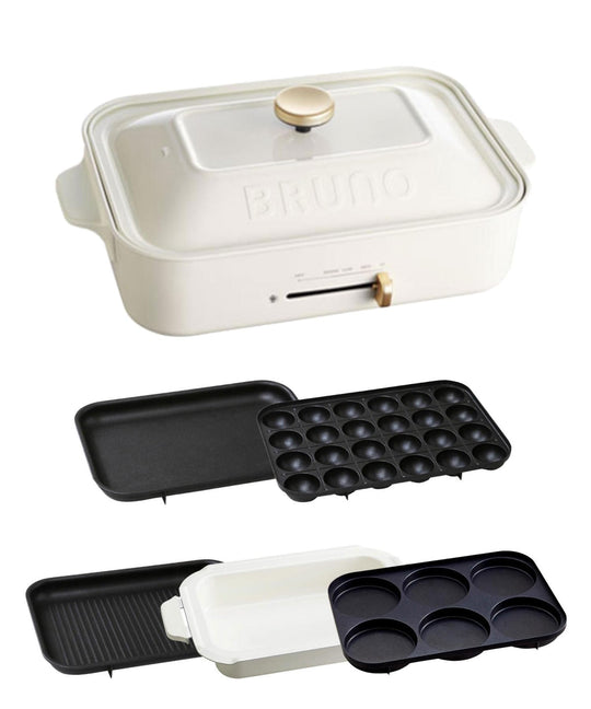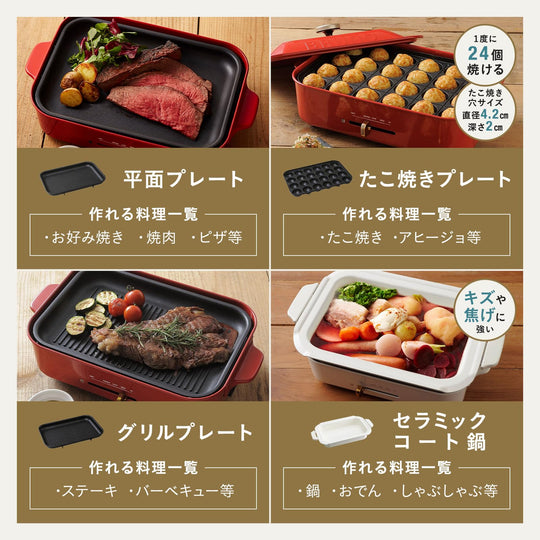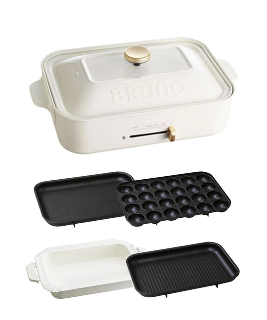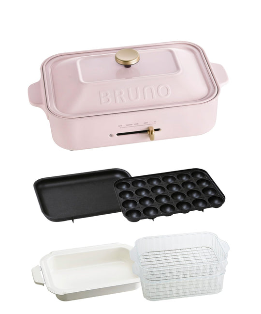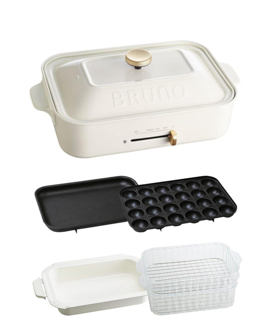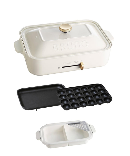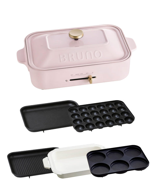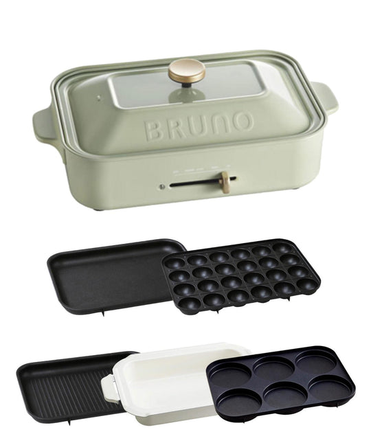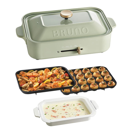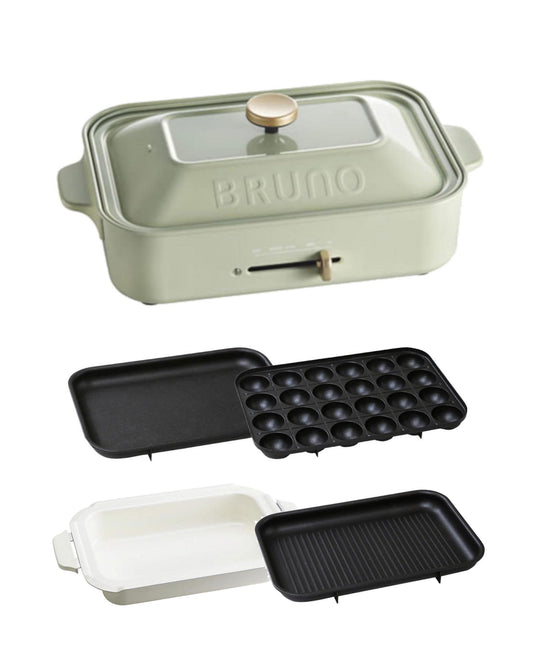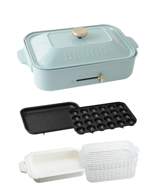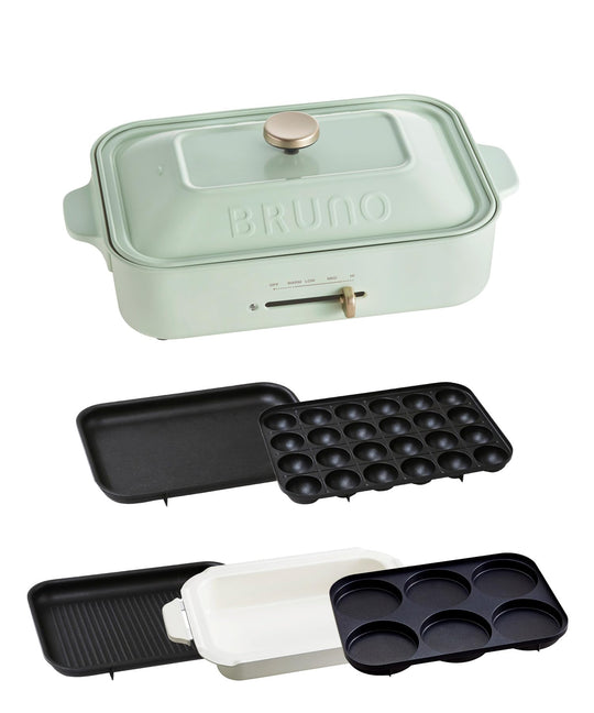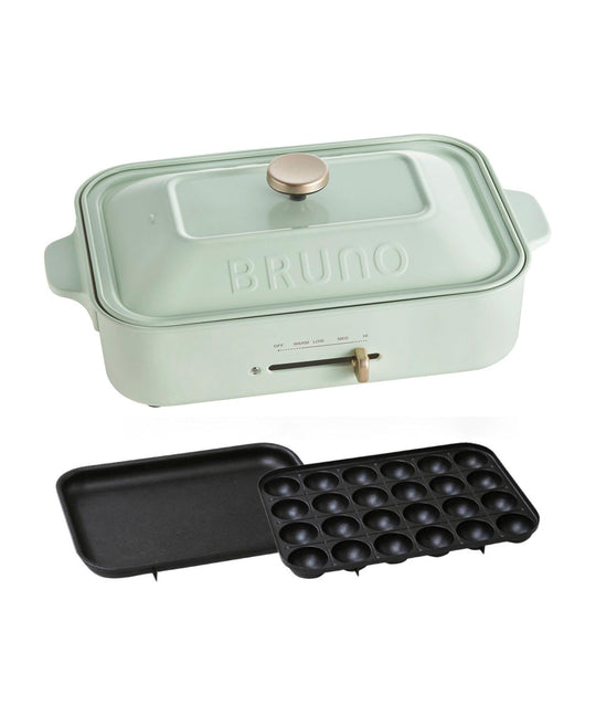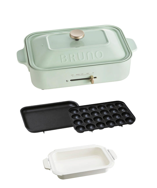 BRUNO ブルーノ コンパクトホットプレート 本体 プレート3種 (たこ焼き セラミックコート鍋 平面) ミント グレー 緑 灰 Mint Gray おしゃれ かわいい これ1台 一台 蓋 ふた付き 1200w 温度調節 洗いやすい 1人 2人 3人用 小型 ひとり暮らし にも A4 サイズ BOE021-MTGY