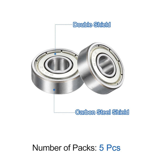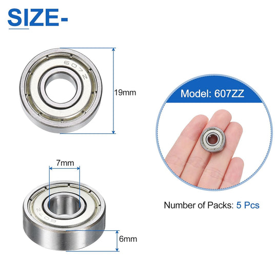 uxcell 5個 607ZZ ディープグルーブボールベアリング 7 x 19 x 6mm 高炭素鋼 ダブルシールドベアリング 電動機器 家庭用電化製品 庭園機械用 シルバートーン