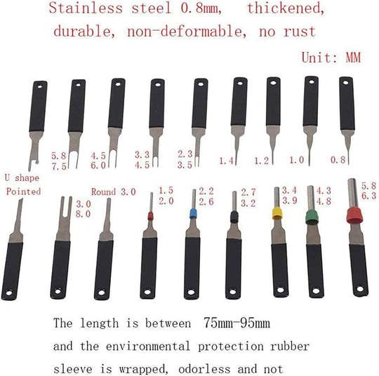 コネクタ端子の取り外しに使用される自動車端子取り外しツール車のワイヤーハーネスおよび家庭用電化製品の硬度 特徴: 真新しくて高品質 この端子工具取り外しキットセットはシャープ用ですので、保護ケースをご用意しております。工具を入れておくと持ち運びが楽になり、子供が工具で遊んだりするのを防ぐことができます。 当社のピン取り外しツールセットは、高品質のステンレス鋼と高硬度のプラスチックで作られています。変形しにくく、長期間繰り返し使用できます。 ピンヘッダーはさまざまな仕様で利用でき、ほとんどの電子機器のメンテナンスに適しているため、作業がより便利になります。 端子抽出ツール キットは、ほとんどのコネクタ端子に共通のツールで、ほとんどの車に適しています。 端子ピン取り外しツールは使いやすく、コネクタ取り外しツールで端子ピンを押したり引いたりするだけで、ワイヤーハーネスコネクタから簡単に取り外すことができます。 仕様: 材質: プラスチックと金属 サイズ:20x15cm/7.87x5.91インチ パッケージ内容: 18個の自動端子取り外しツール 注記: 手動測定のため、0~1mmの誤差はご了承ください。ご注文前に気にしないでください。 この端子工具取り外しキットセットはシャープ用ですので、保護ケースをご用意しております。工具を入れておくと持ち運びが楽になり、子供が工具で遊んだりするのを防ぐことができます。 当社のピン取り外しツールセットは、高品質のステンレス鋼と高硬度のプラスチックで作られています。変形しにくく、長期間繰り返し使用できます。 端子抽出ツール キットは、ほとんどのコネクタ端子に共通のツールで、ほとんどの車に適しています。 ピンヘッダーはさまざまな仕様で利用でき、ほとんどの電子機器のメンテナンスに適しているため、作業がより便利になります。 端子ピン取り外しツールは使いやすく、コネクタ取り外しツールで端子ピンを押したり引いたりするだけで、ワイヤーハーネスコネクタから簡単に取り外すことができます。 › もっと見るតម្លៃដែលទៀងទាត់ 1,554តម្លៃដែលទៀងទាត់ 1,554 -