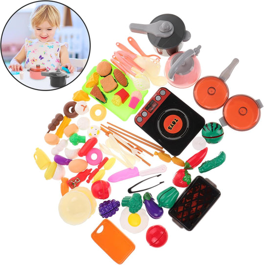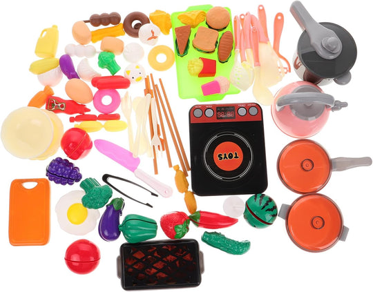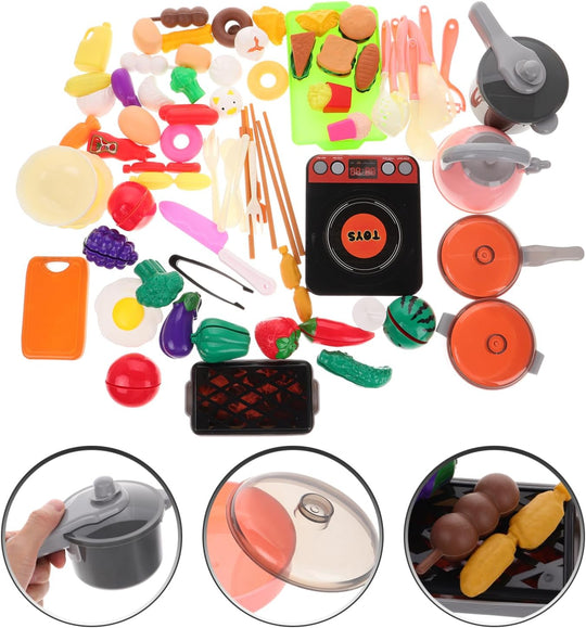 UPKOCH キッズ キッチン おもちゃ アクセサリー、幼児 料理 プレイセット ごっこ 鍋 フライパン セット 人工 調理器具 電化製品 切る 遊び 食べ物 調理器具