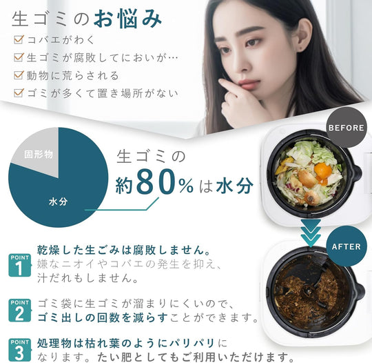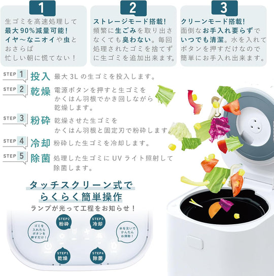 QUADS スマート 生ごみ処理機 GYUTTO ギュット 3L 約1~6人用 家庭用 乾燥式 粉砕式 大容量 生ごみ乾燥機 生ゴミ処理 活性炭フィルター 助成金対象 SDGS