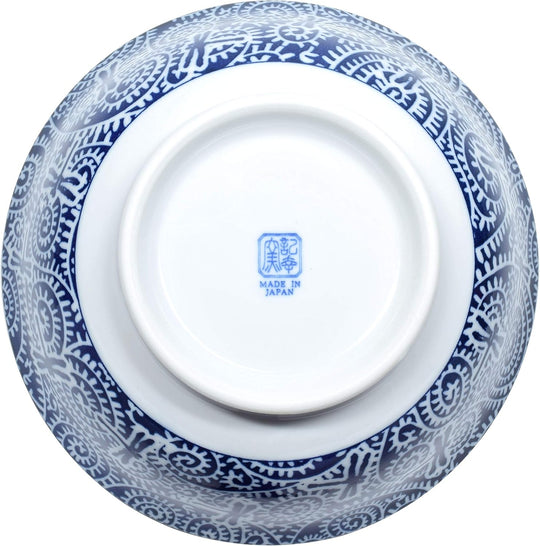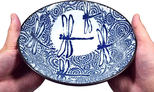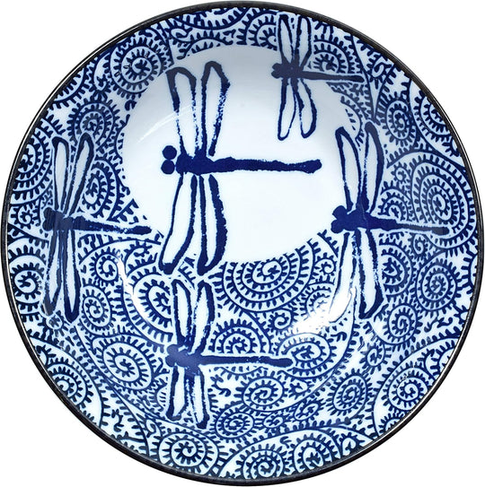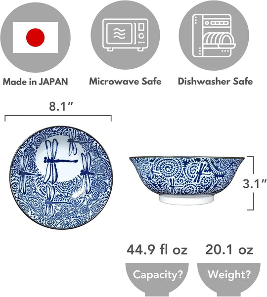 美濃焼 日本製 広口 セラミックボウル うどんラーメン スープボウル ドラゴンフライデザイン ブルー