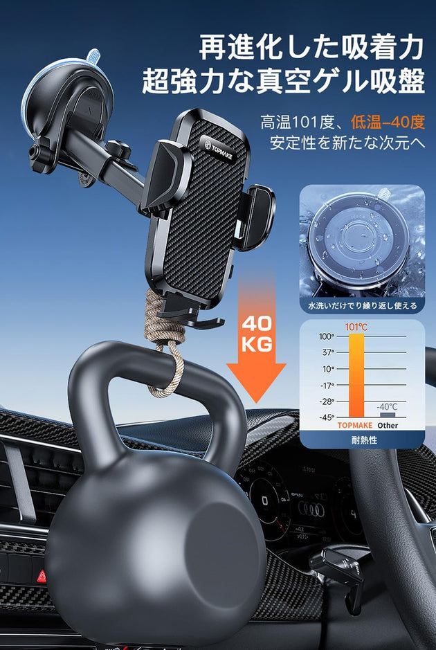 Topmake Smartphone Holder Car Car Car Holder Gel Suction Cup/Clip 2in1 Mobile Holder Car Air Conditioner Vent 360 Degree Rotation Telescoping Arm សាកសមសម្រាប់ទូរសព្ទដៃ ទទឹង 52mm ដល់ 95mm សៀវភៅដៃជប៉ុន រួមបញ្ចូល (ខ្មៅ)