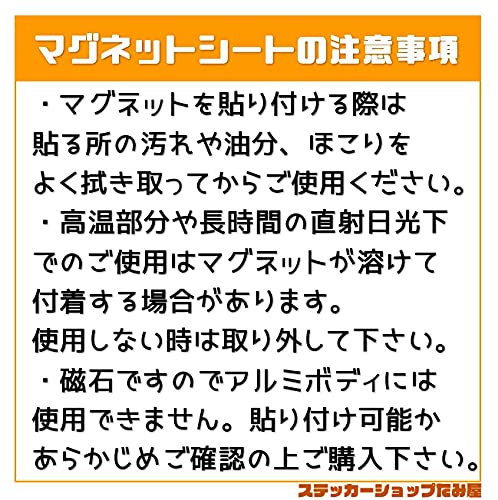 ◎屋外利用可能。3~4年耐水性素材です。 ◎ステッカーサイズは画像に記載してあります。ご確認ください。 ◎安心のステッカーショップたみ屋が日本国内で製造しています。 ◎日本語の貼り方説明書を同封いたします。 ◎貼り方や適応素材については商品説明をご確認ください。 › もっと見る ブランド ステッカーショップたみ屋 サイズ マグネット 色 ブラック 材質 ビニール 商品の重量 25 グラム 商品の推奨用途 車 メーカー ステッカーショップたみ屋 ユニット数 1 枚តម្លៃដែលទៀងទាត់ ពី 7តម្លៃដែលទៀងទាត់ ពី 7 -