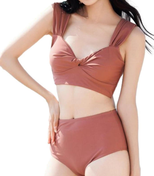 [1/2plus] 水着 ギャザー タンキニ セット ビキニ トップス ショーツ ハイ ウエスト オフ ショルダー セクシー セパレート ママ レディース