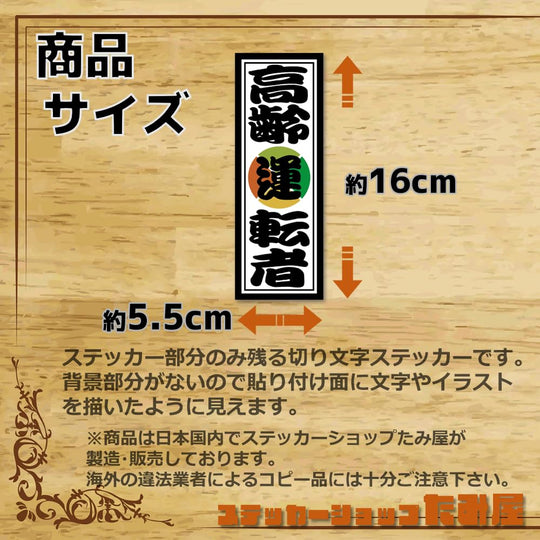 【たみ屋】高齢運転者お札風ステッカー高齢者マーク5.5cm×16cm耐候防水性日本製シール カーステッカー (マグネット)