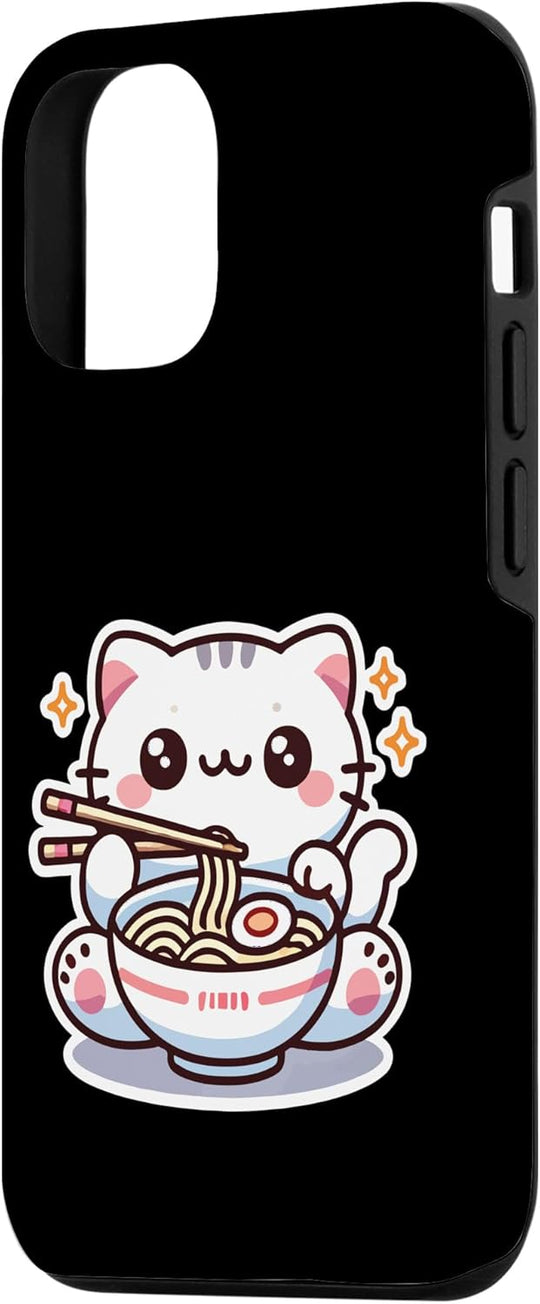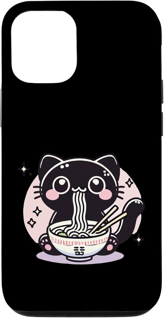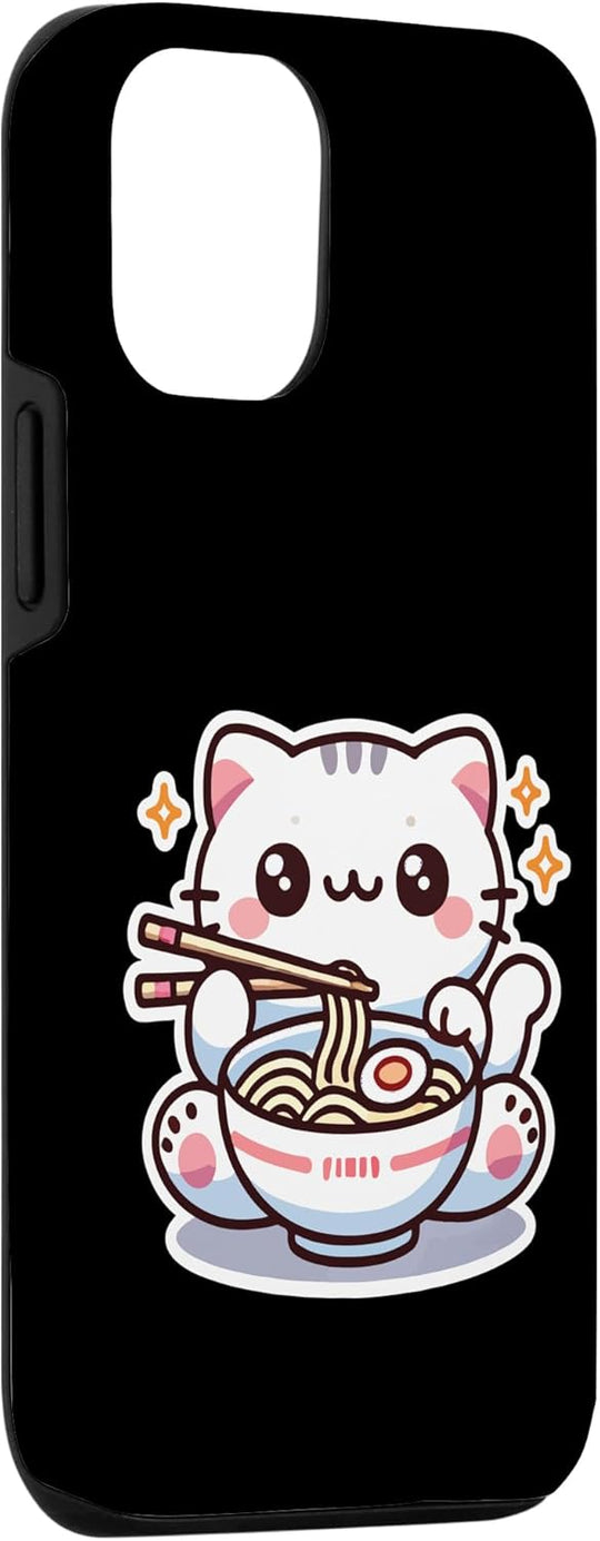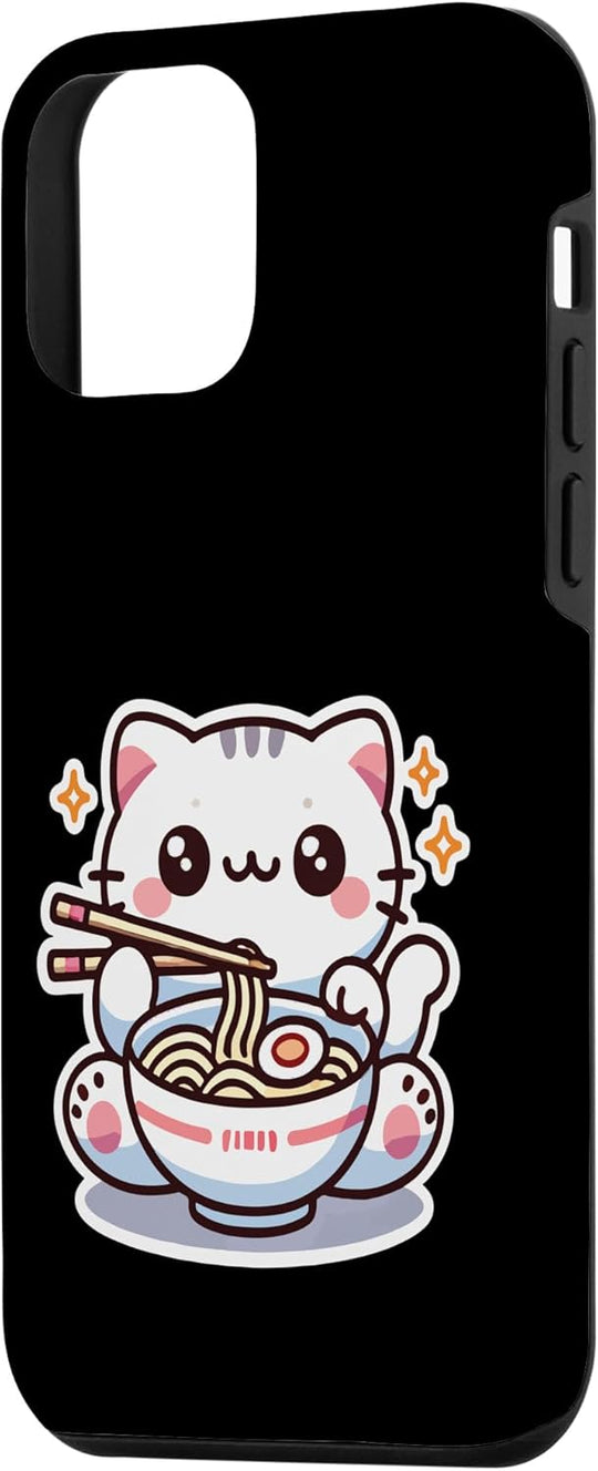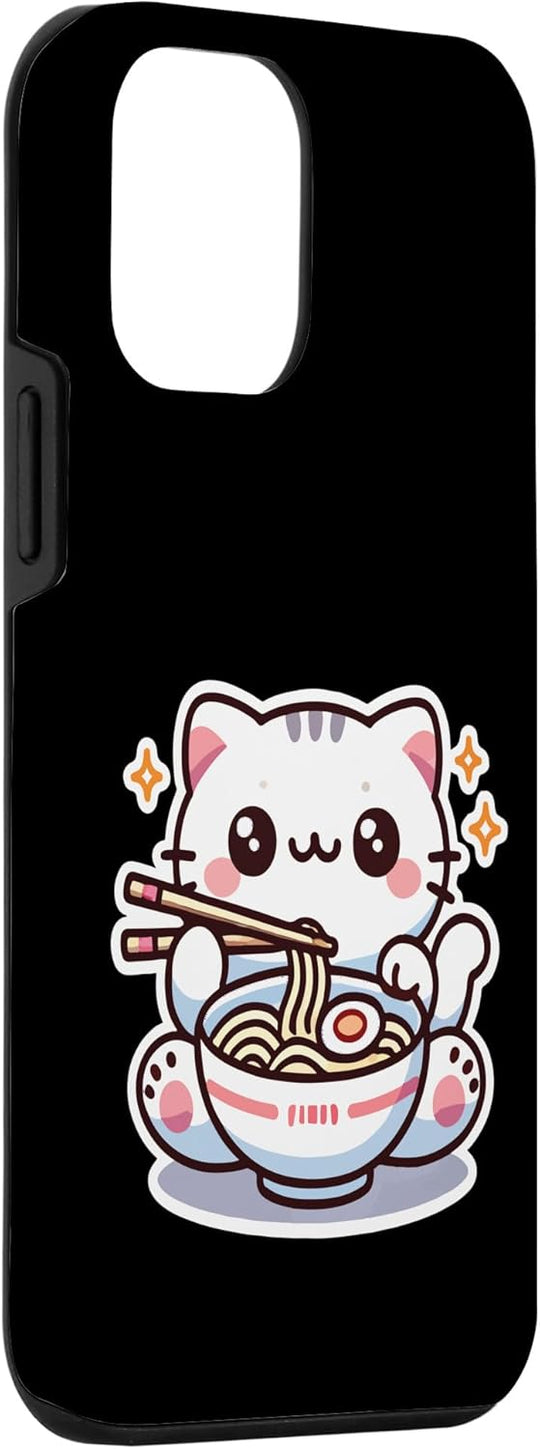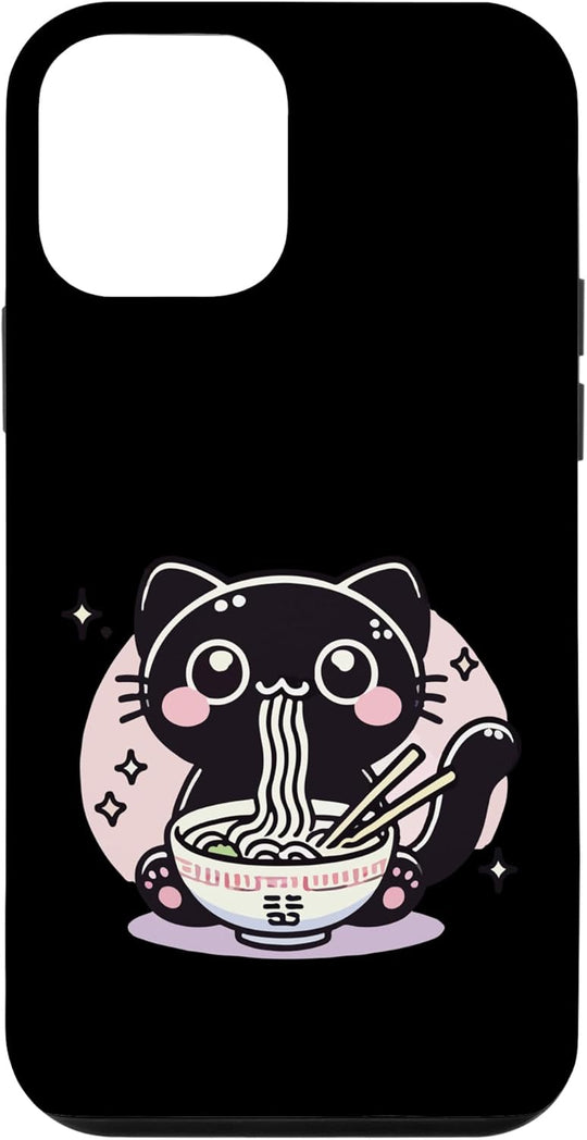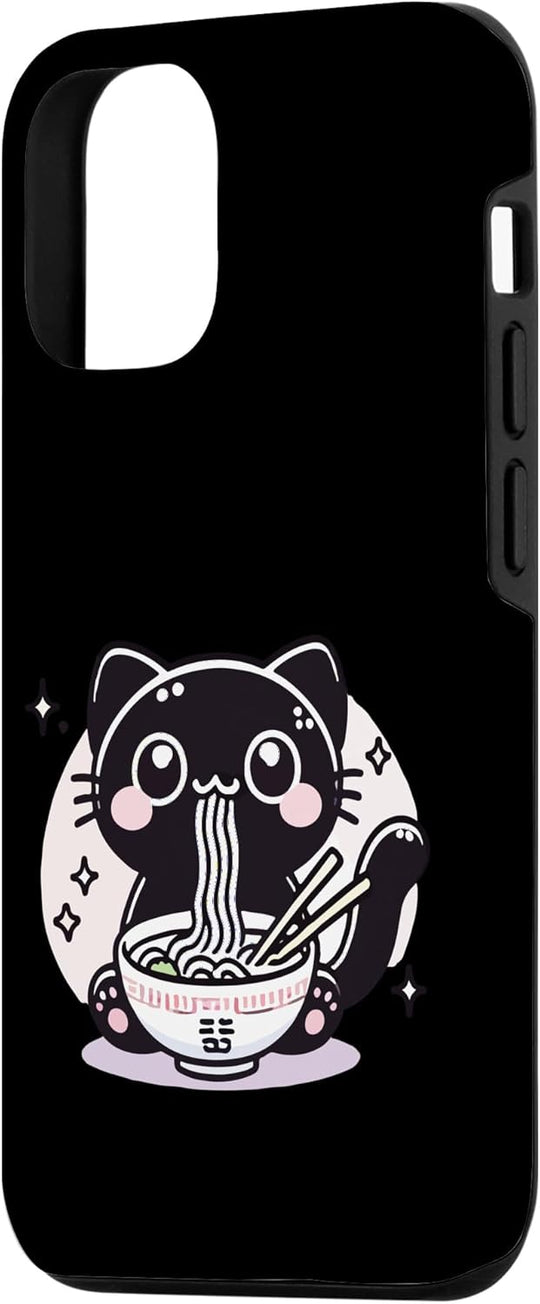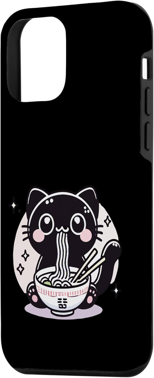 かわいいアニメ猫がラーメンを食べるかわいい日本の麺 スマホケース iPhone 12/12 Pro 用