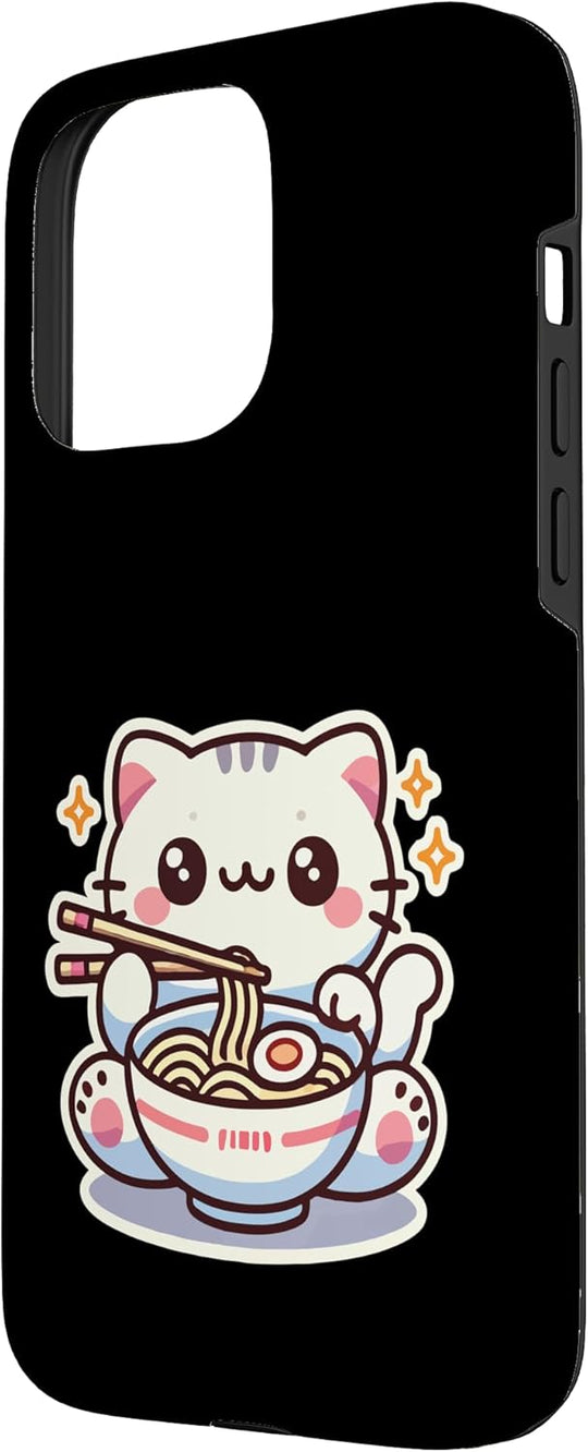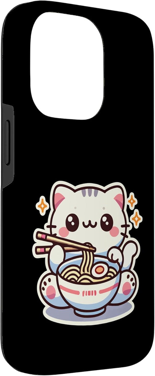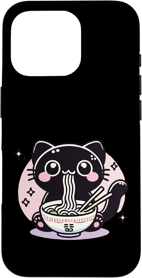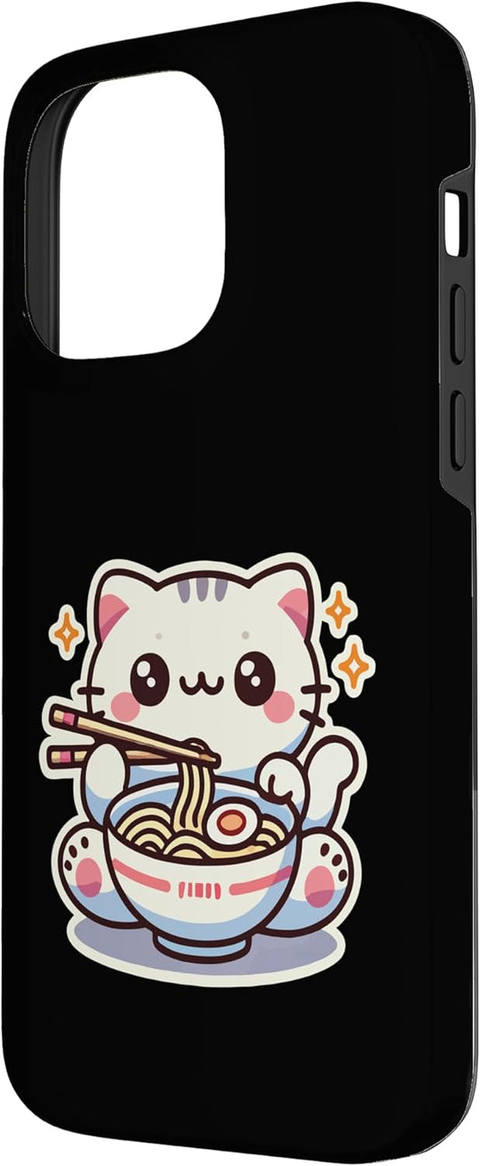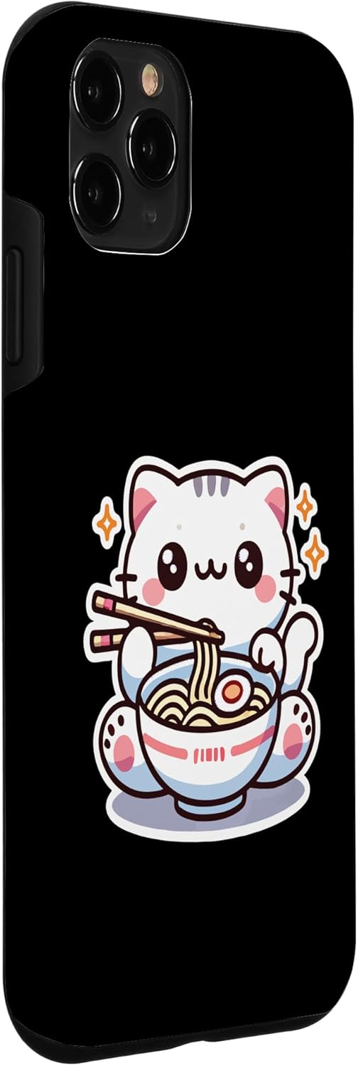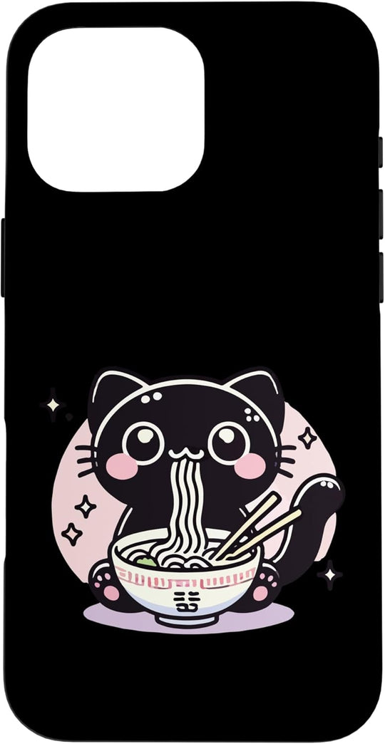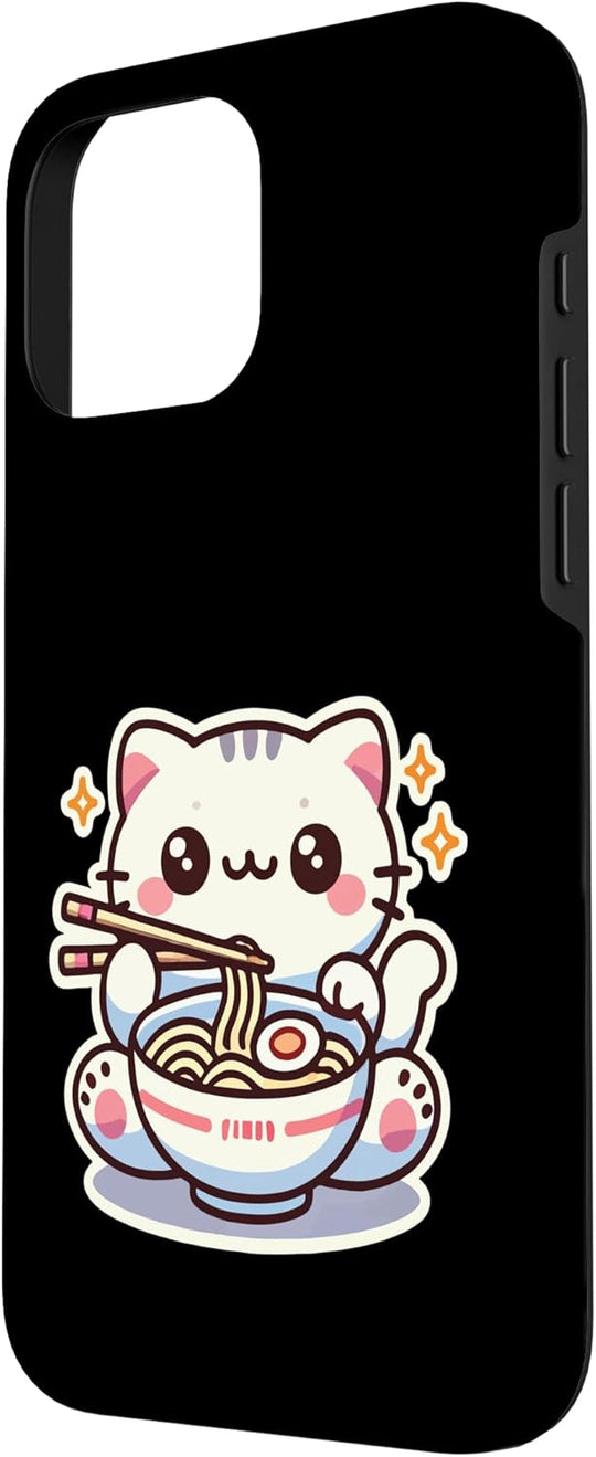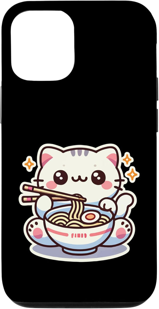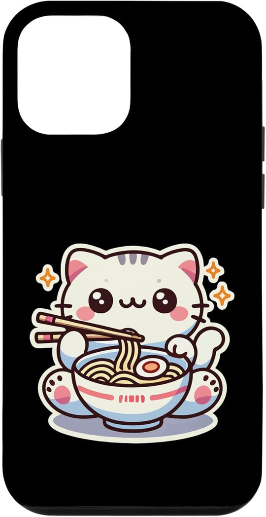 かわいいアニメ猫がラーメンを食べるかわいい日本の麺 スマホケース iPhone 12/12 Pro 用