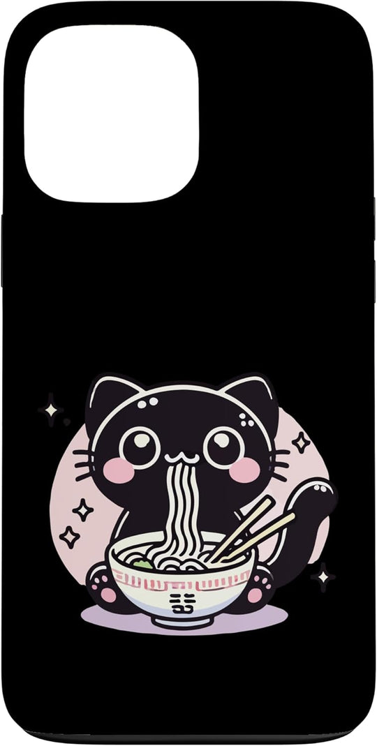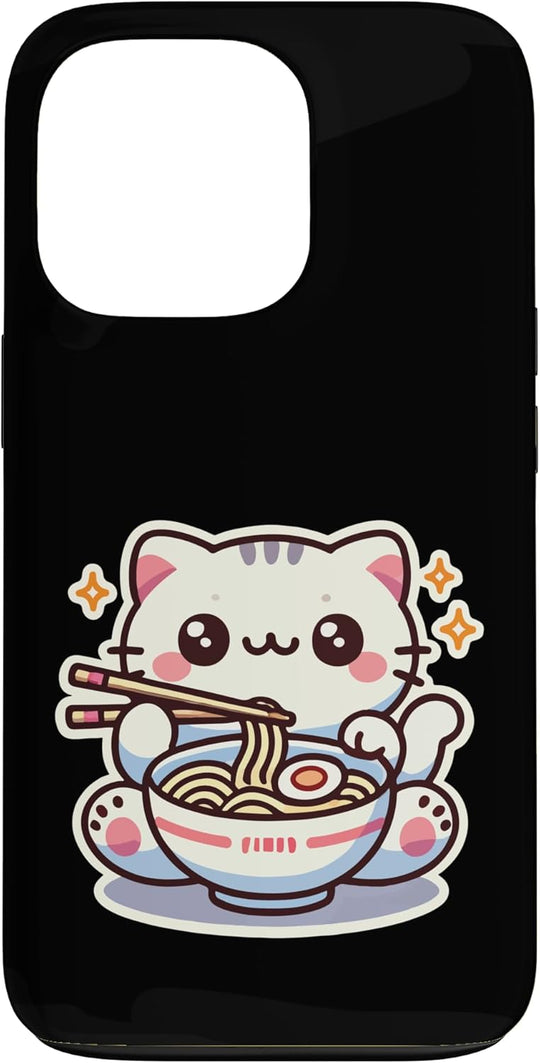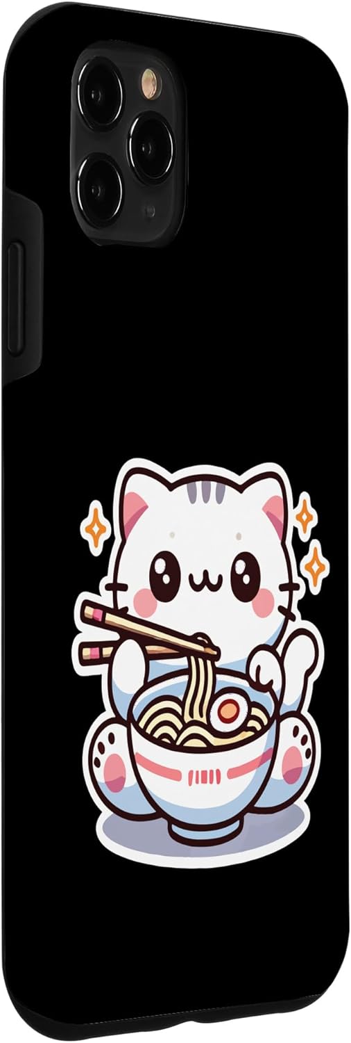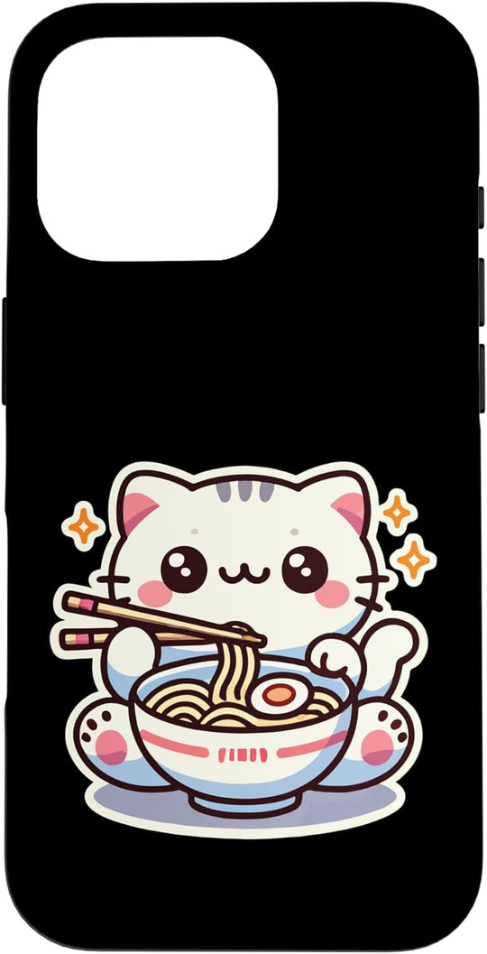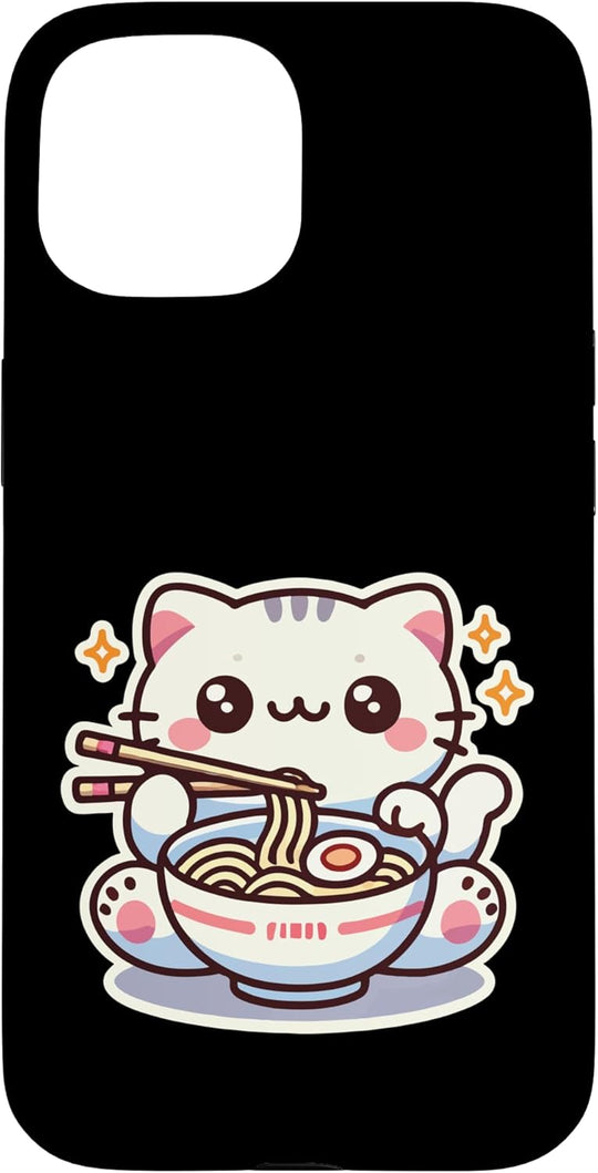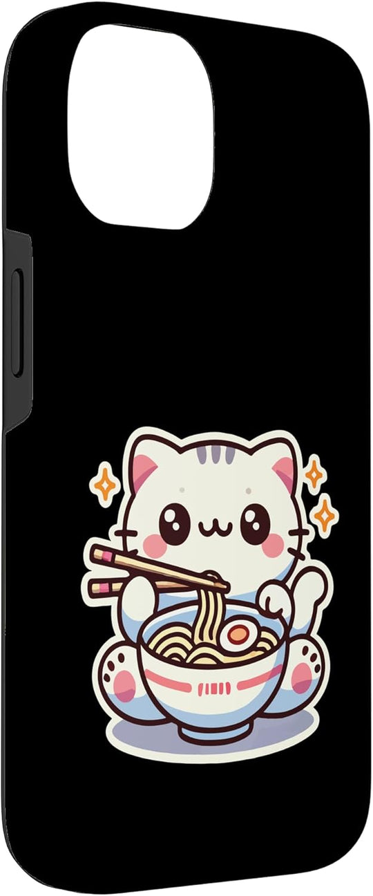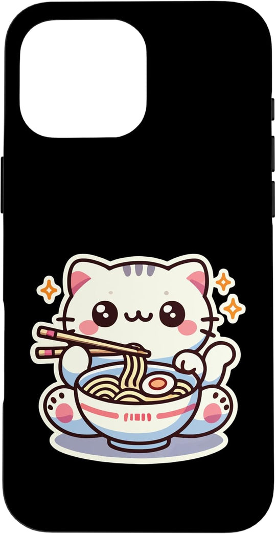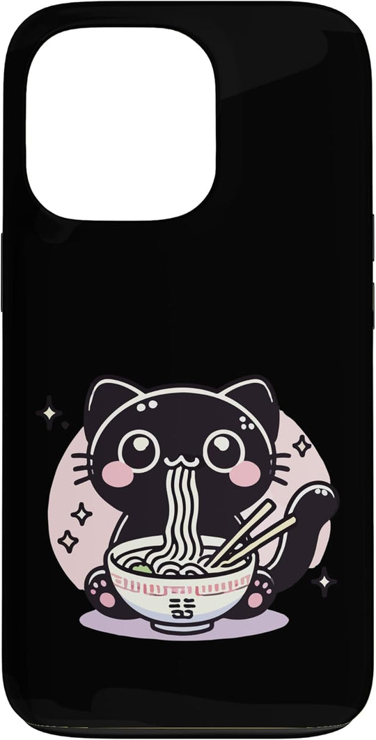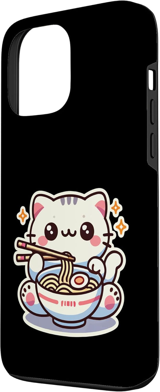 かわいいアニメ猫がラーメンを食べるかわいい日本の麺 スマホケース iPhone 12/12 Pro 用
