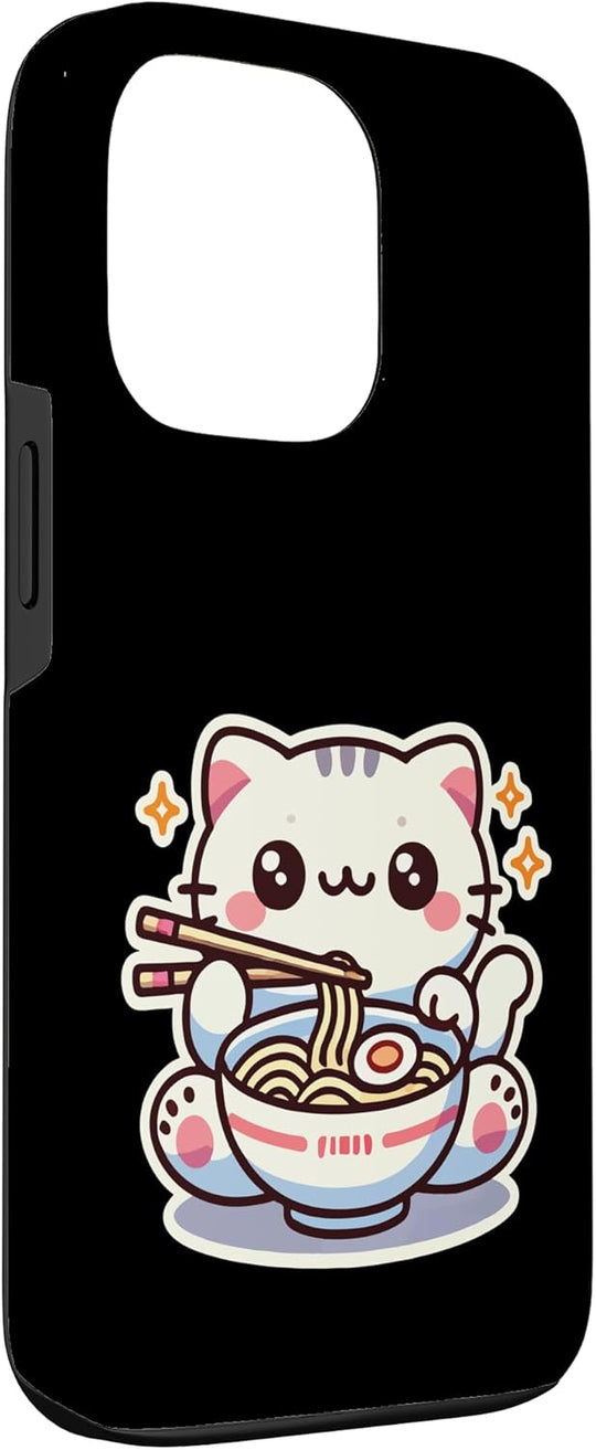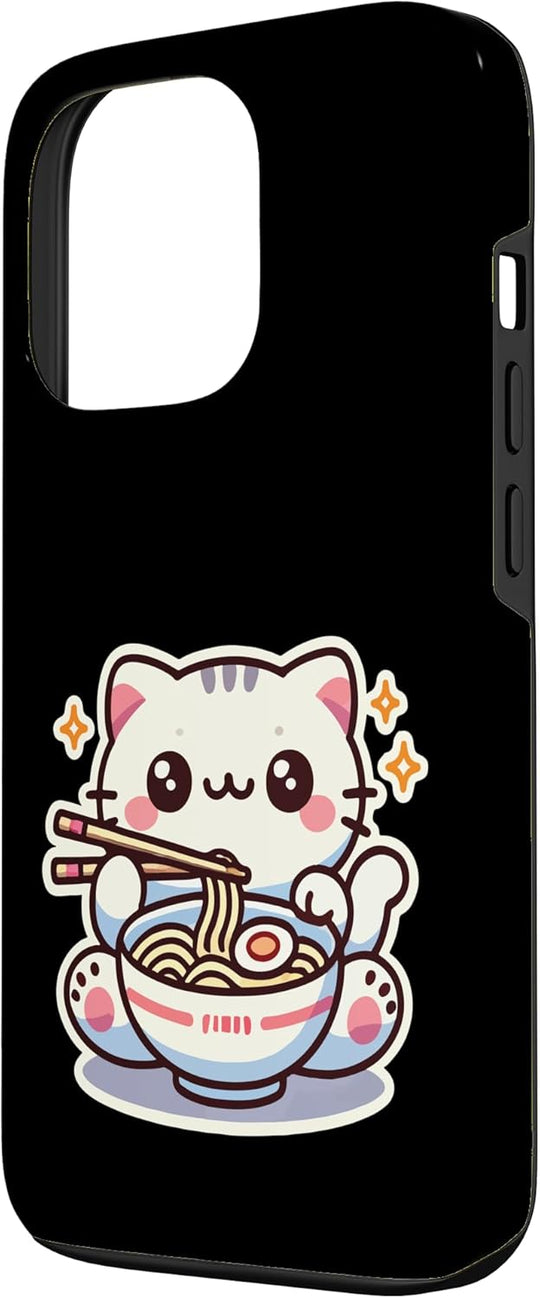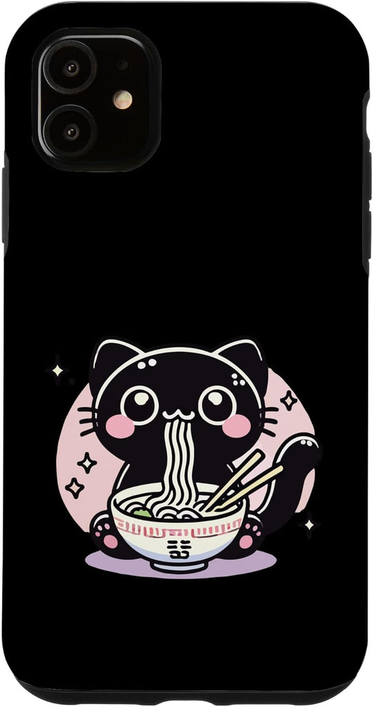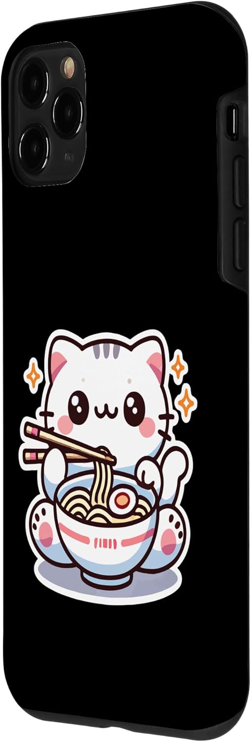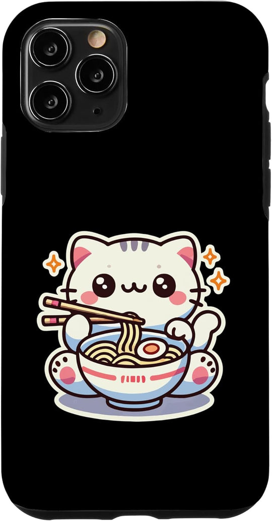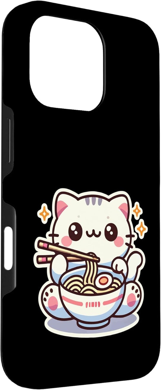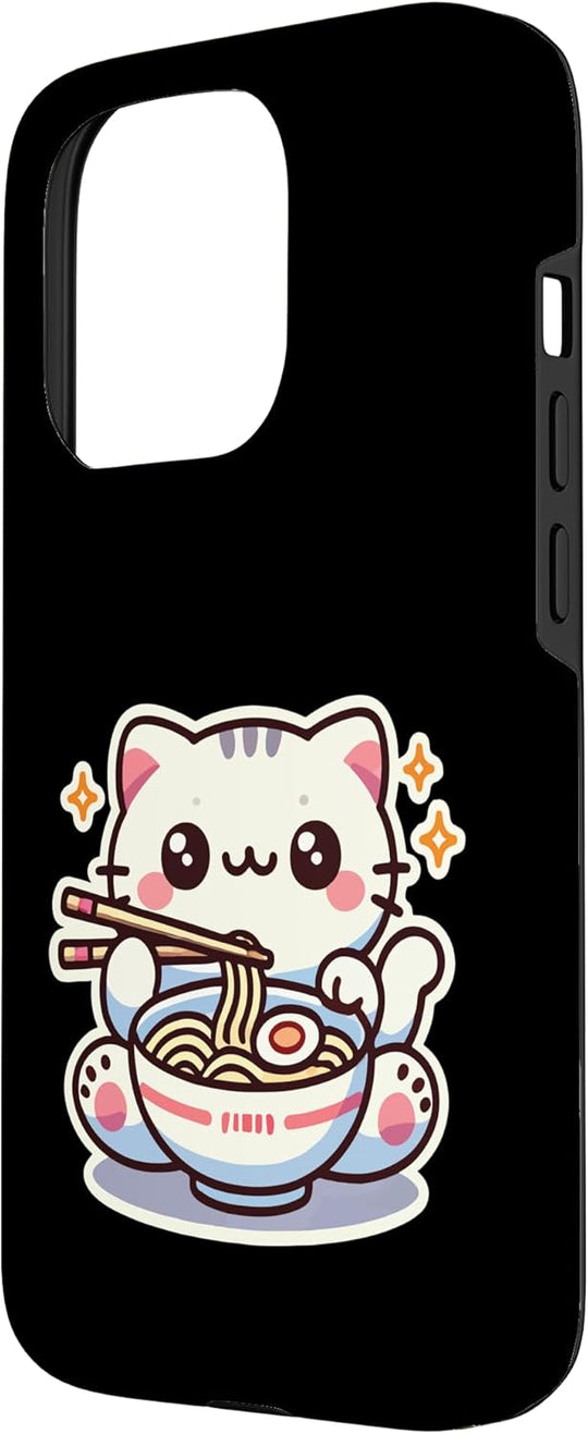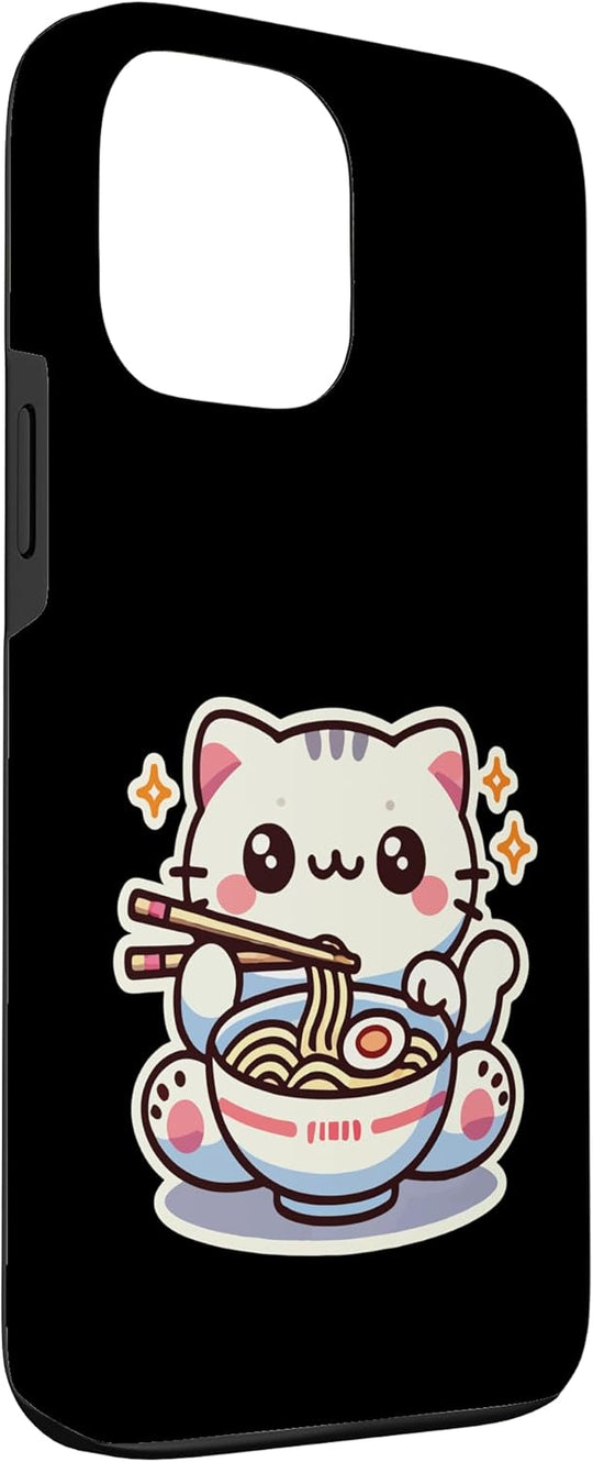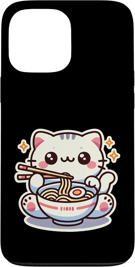 かわいいアニメ猫がラーメンを食べるかわいい日本の麺 スマホケース iPhone 12/12 Pro 用