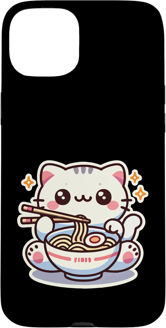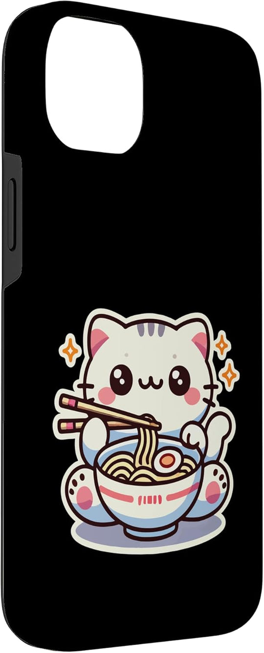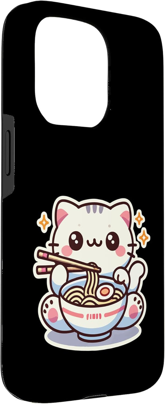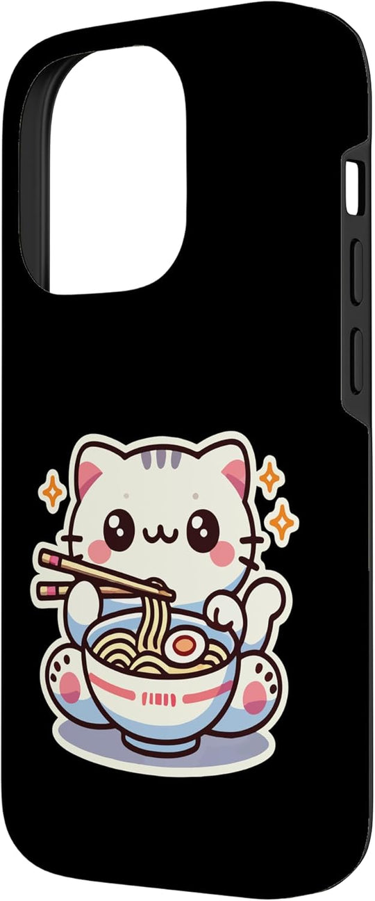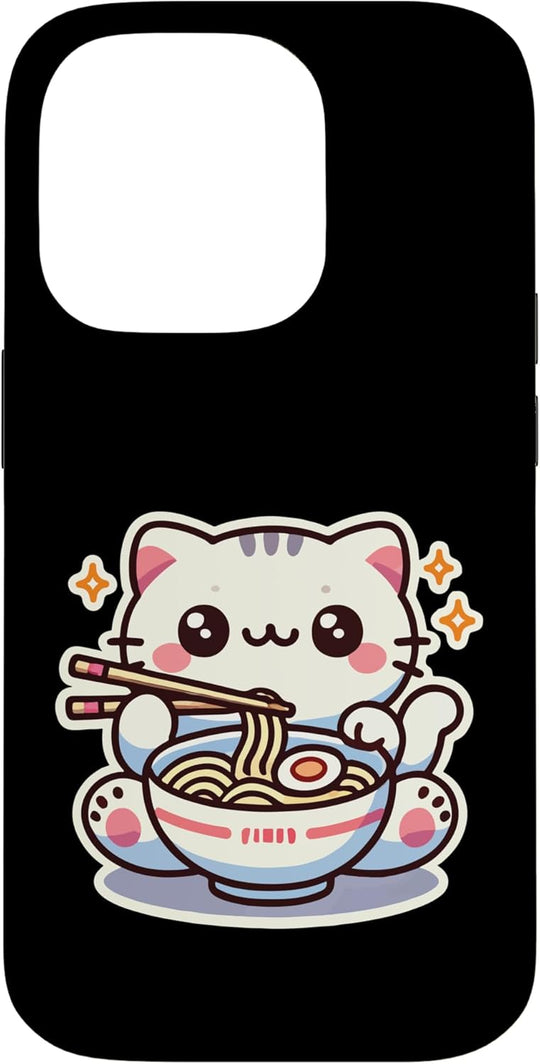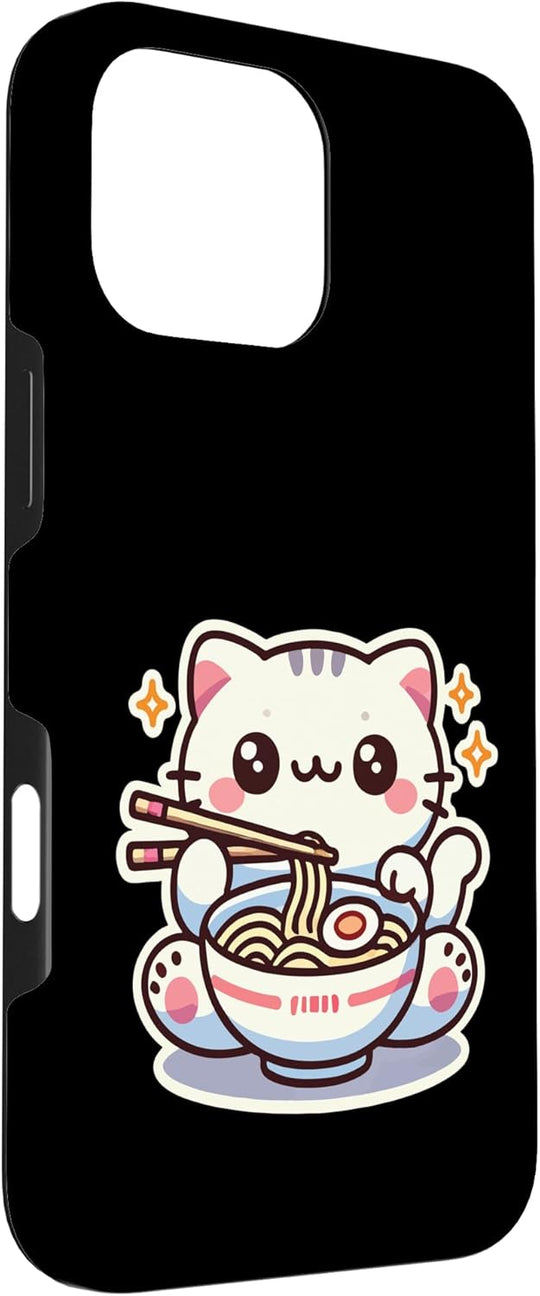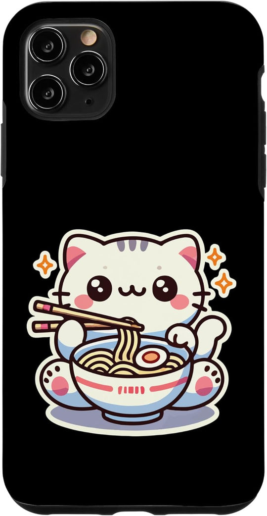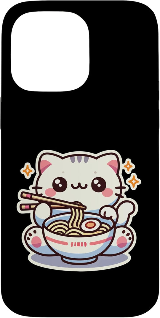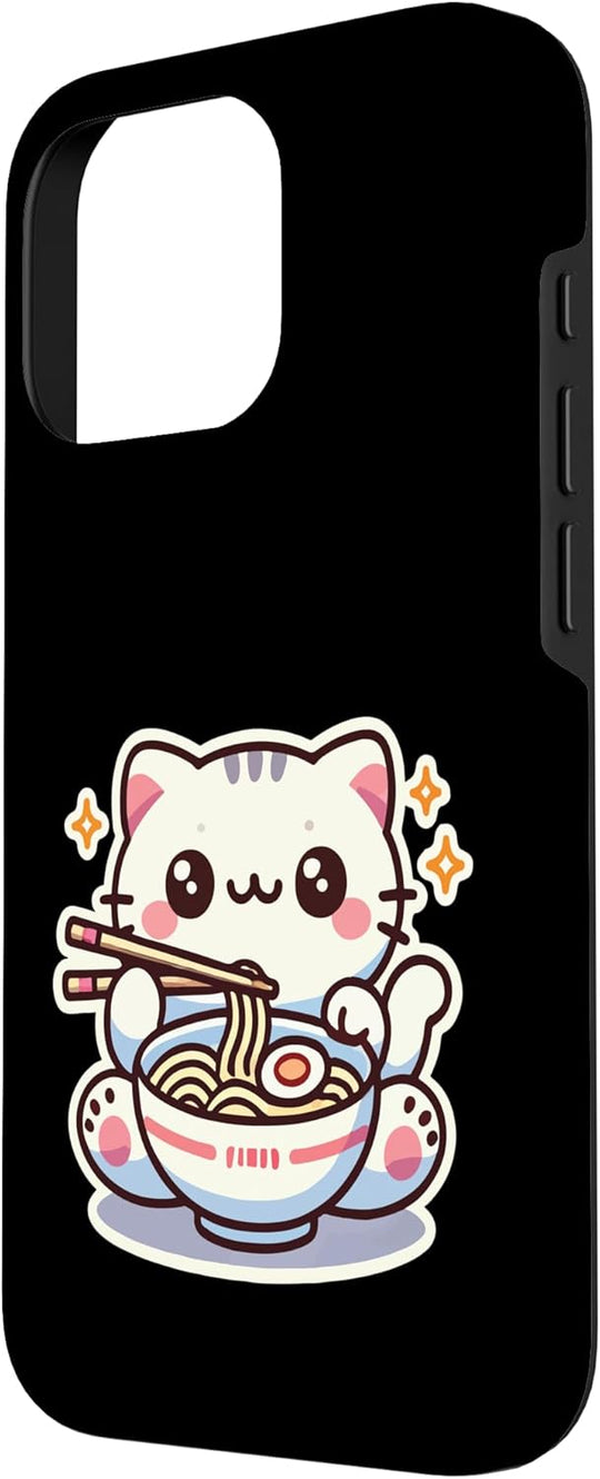 かわいいアニメ猫がラーメンを食べるかわいい日本の麺 スマホケース iPhone 12/12 Pro 用
