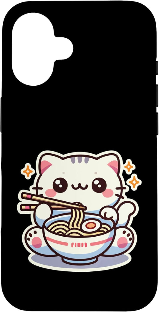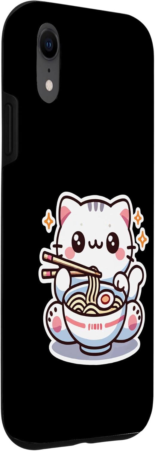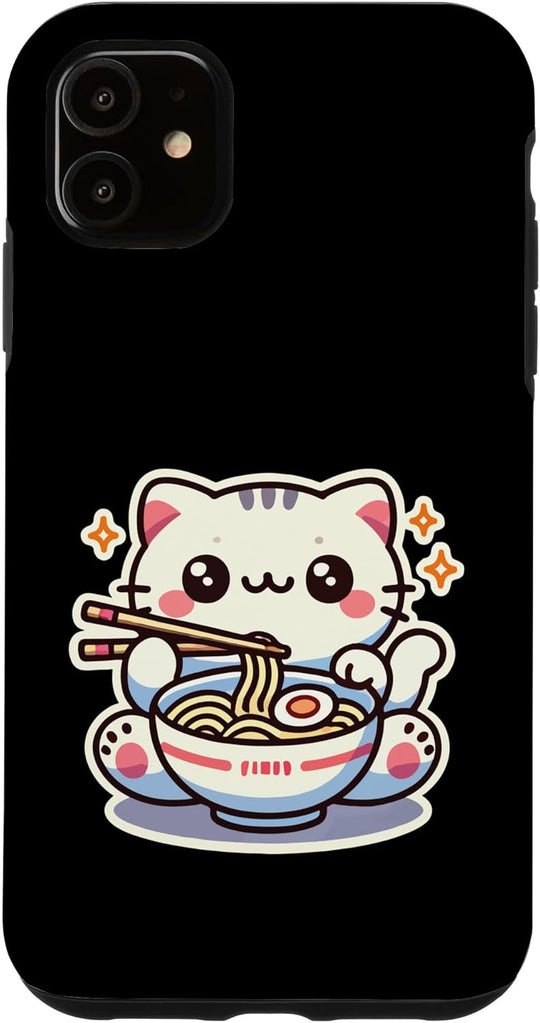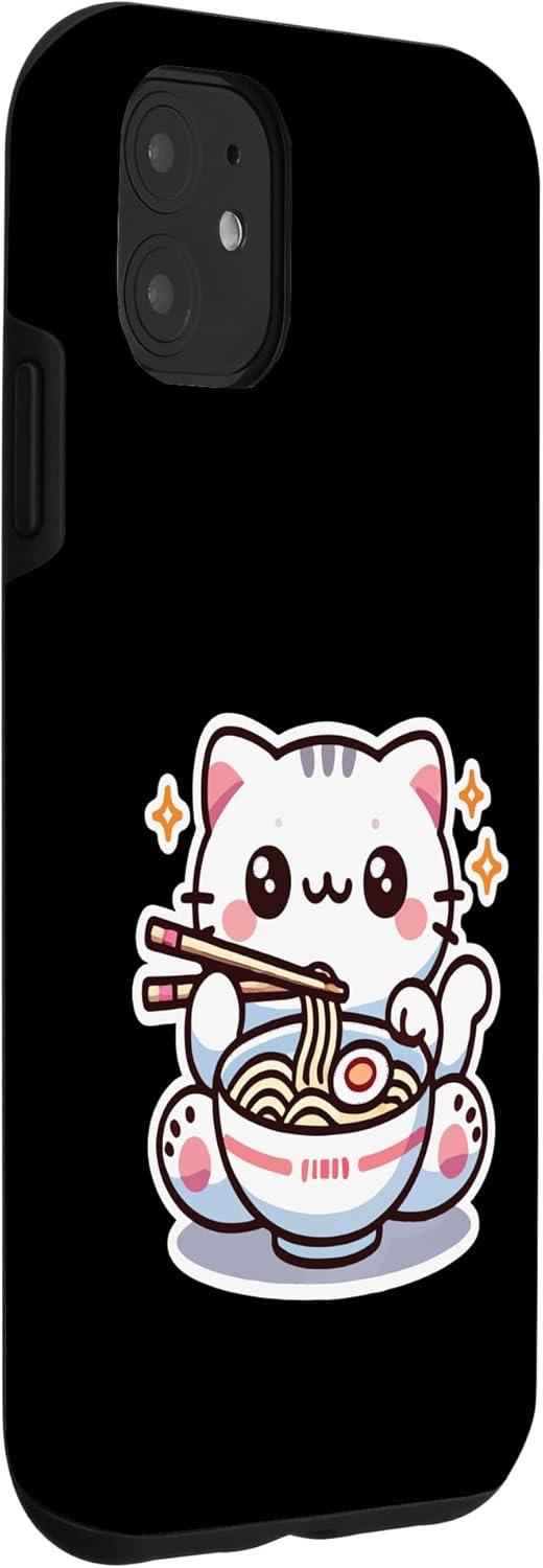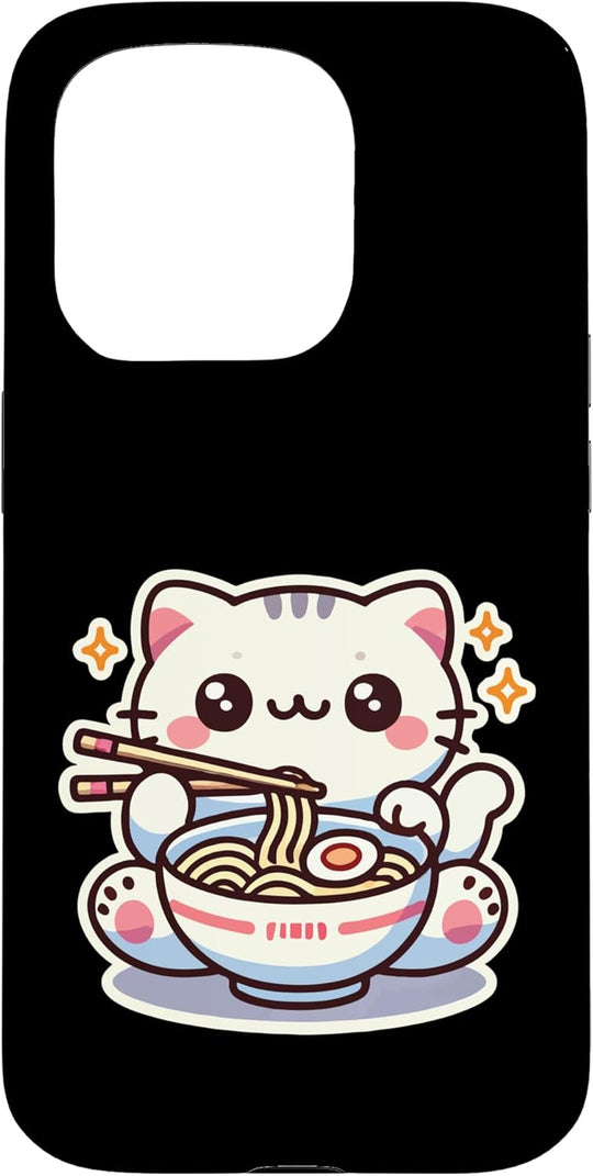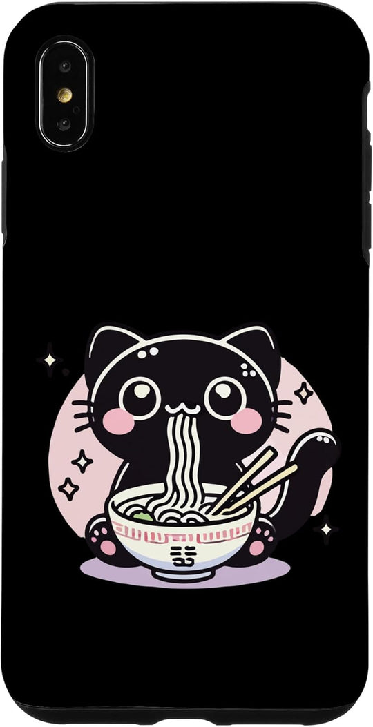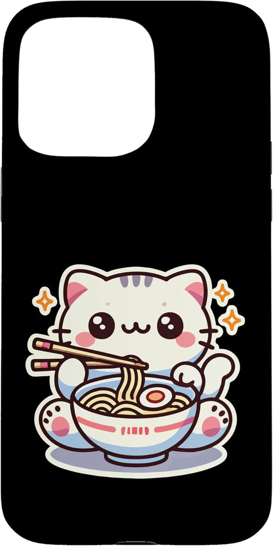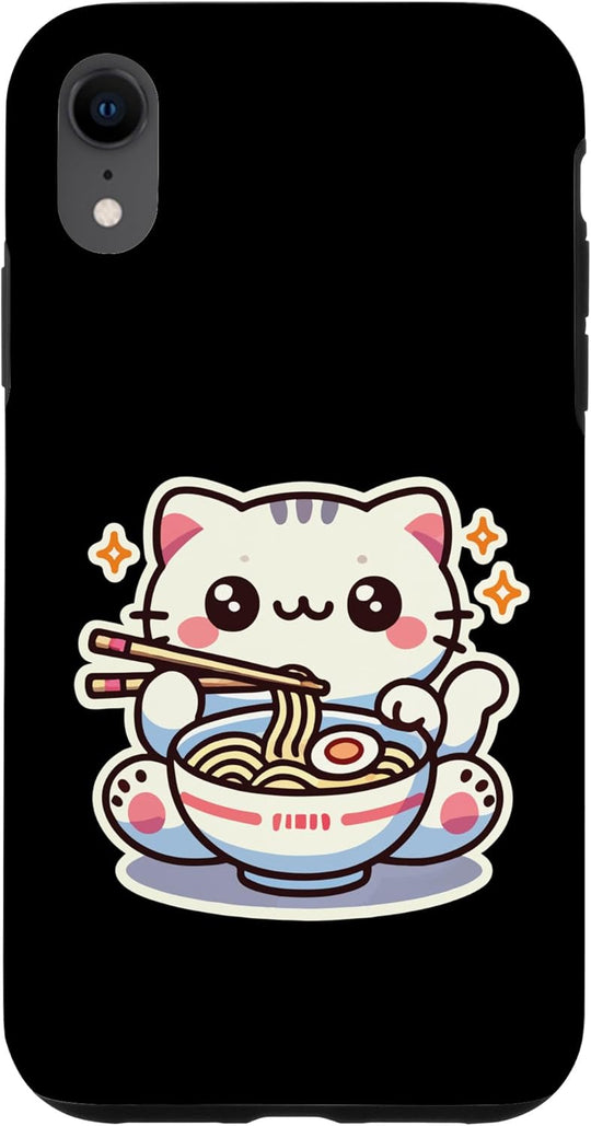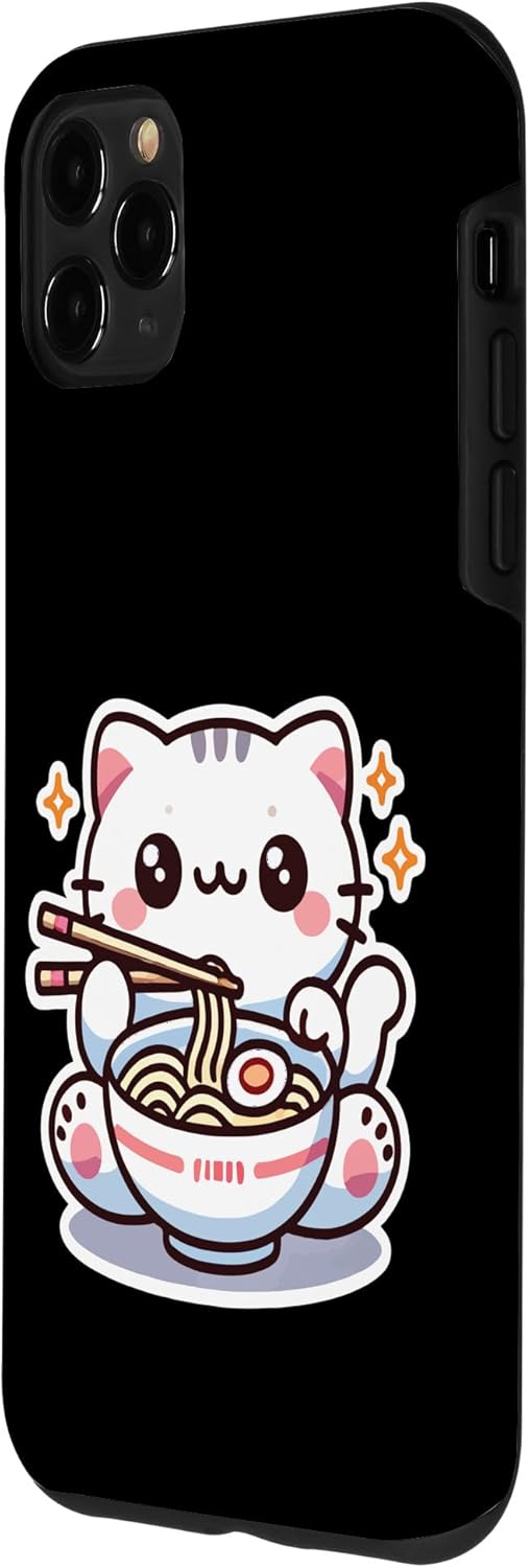 かわいいアニメ猫がラーメンを食べるかわいい日本の麺 スマホケース iPhone 12/12 Pro 用