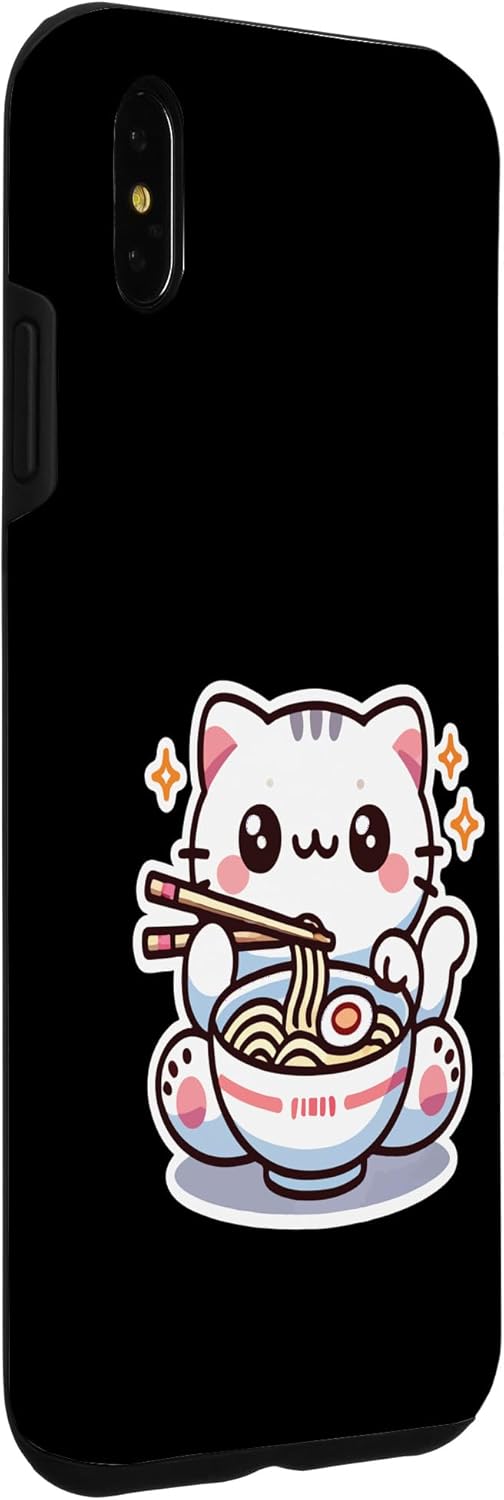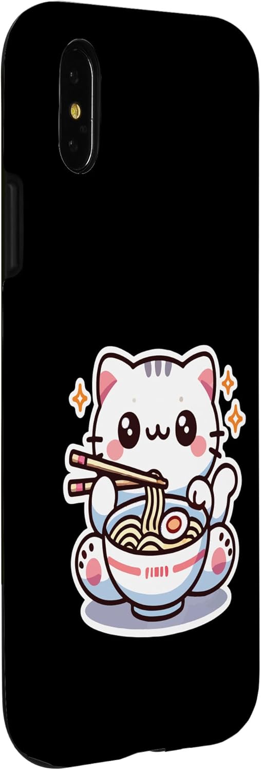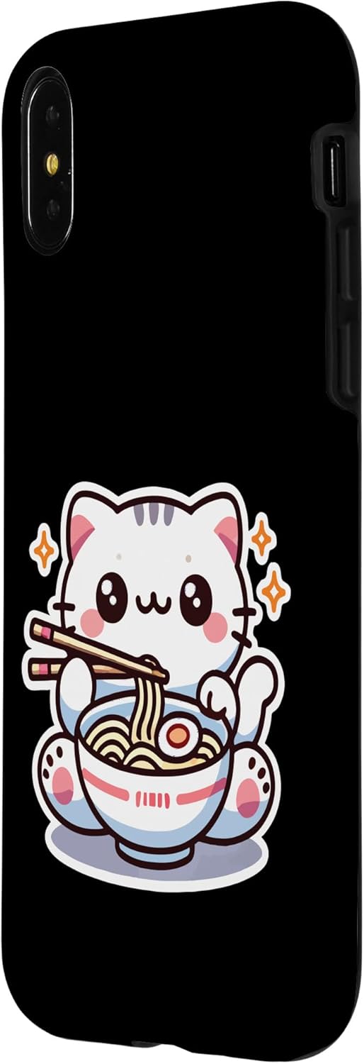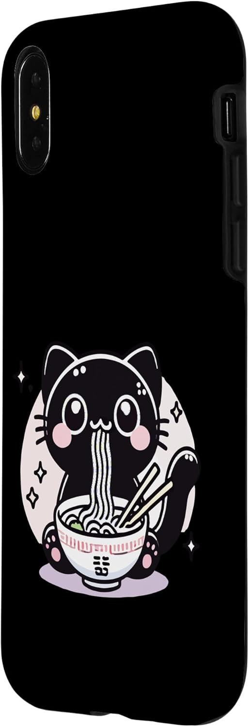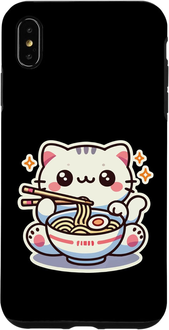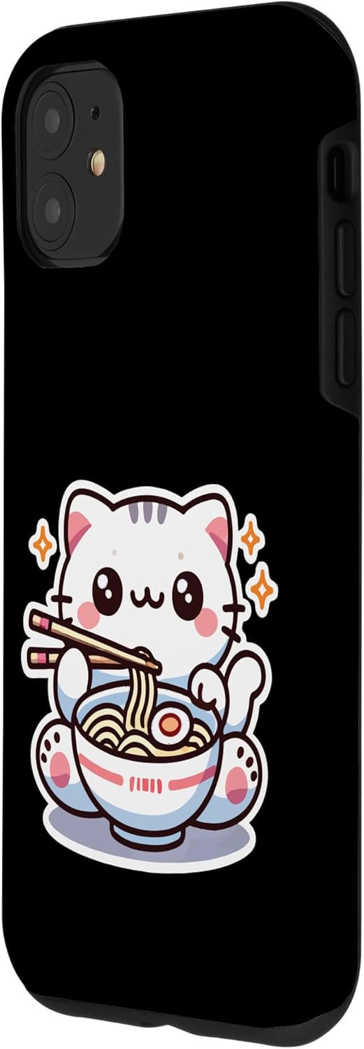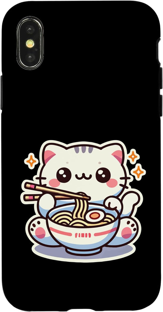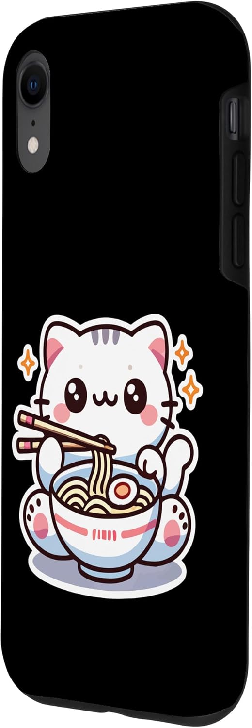 かわいいアニメ猫がラーメンを食べるかわいい日本の麺 スマホケース iPhone 12/12 Pro 用
